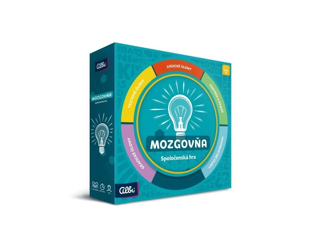 PROMAŽTE SI MOZKOVÉ ZÁVITY! Společenská hra Mozgovna precvičí vaše schopnosti v 5 odlišných kategoriích. Zazáříte v matematice nebo v textových úlohách? Máte výbornou paměť nebo spíš prostorovou představivost? A co všeobecný přehled? Každý hráč má silné i slabé stránky, o tom nemožno pochybovat, ale i na to Mozgovna myslí! Stavíte se?Body získáváte nejen za správně vyřešené úlohy, ale také za uzavírání sázek na úspěch či neúspěch protihráčů. Dokážete ostatní hráče odhadnout? V každém kole máte možnost vybrat ze dvou náhodných okruhů ten, ve kterém více vynikáte. Správně uzavřená sázka a rychlé řešení úloh vám mohou přinést extra body. Naopak, špatně uzavřená sázka vám body vezme. Ale pozor, na každou úlohu máte jen omezený čas! Když v tomto čase nenapíšete správnou odpověď, nezískáte žádné body. Mozgovna je díky tomu napínavou hrou, která vás zábavnou formou provede zajímavými úlohami.