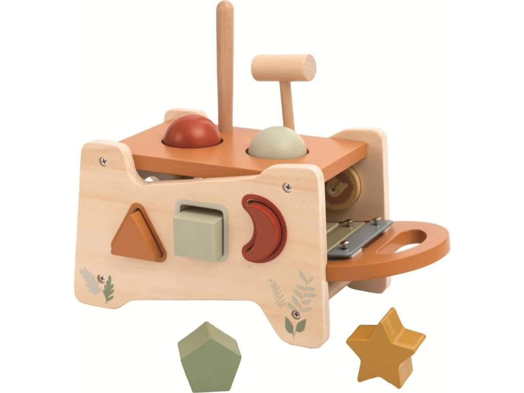 Xylofon, vkládačka a zatloukačka jsou propojené hračky, které dětem nabízejí možnost objevovat rytmus a zvuky a zároveň rozvíjet důležité motorické dovednosti.