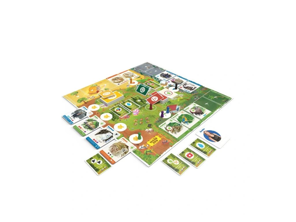 Postarejte se společně o zvířata ve své vlastní zoologické zahradě. Kooperativní rodinná hra pro hráče od 8 let.Hra obsahuje: 1 oboustranný herní plán, 7 karet zvířat, 80 karet zdrojů, 30 karet potřeb, 6 karet členů týmu, 6 karet nástrojů, 60 žetonů problému, 6 přehledových karet, 6 figurek, pravidla v českém a slovenském jazyce, 6 uzavřených obálek (obsahujících další výzvy, pravidla a karty).
