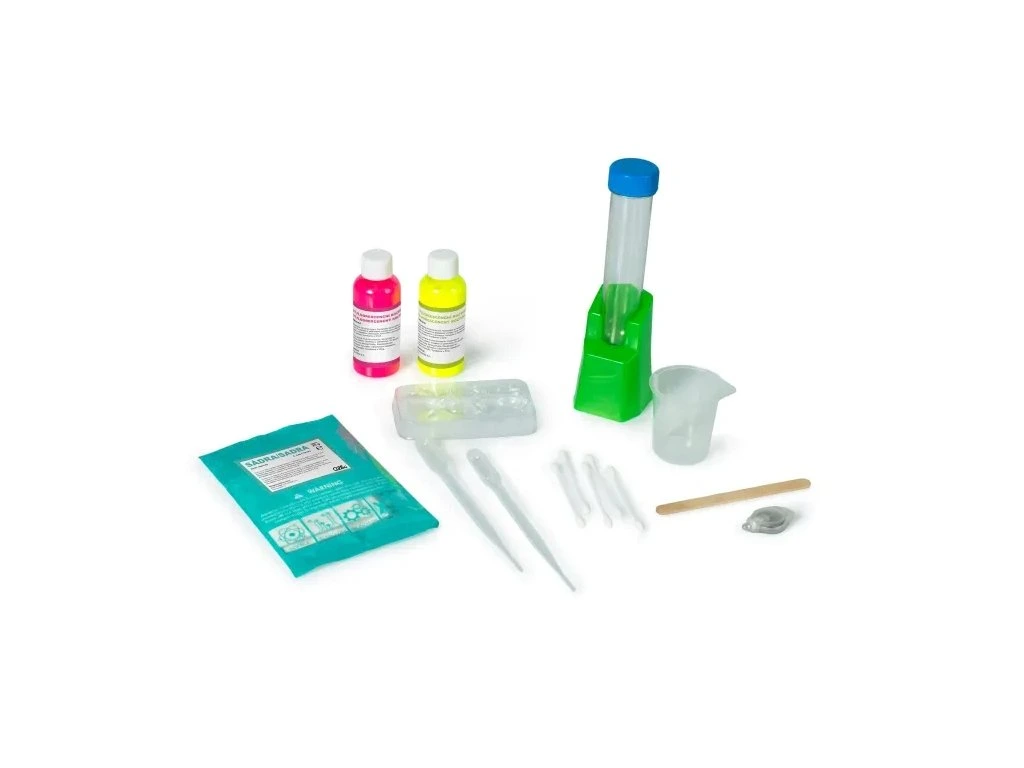 Neónové experimenty jsou úžasnou sadou pro malé objevitele, kteří chtějí prozkoumat tajemství chemie, fyziky a biologie. Schováte se v temné místnosti a vyzkoušíte reakce neónových pigmentů pod UV světélkem – sledujte, jak experimenty svítí ve tmě a objevujte fascinující svět fluorescence.