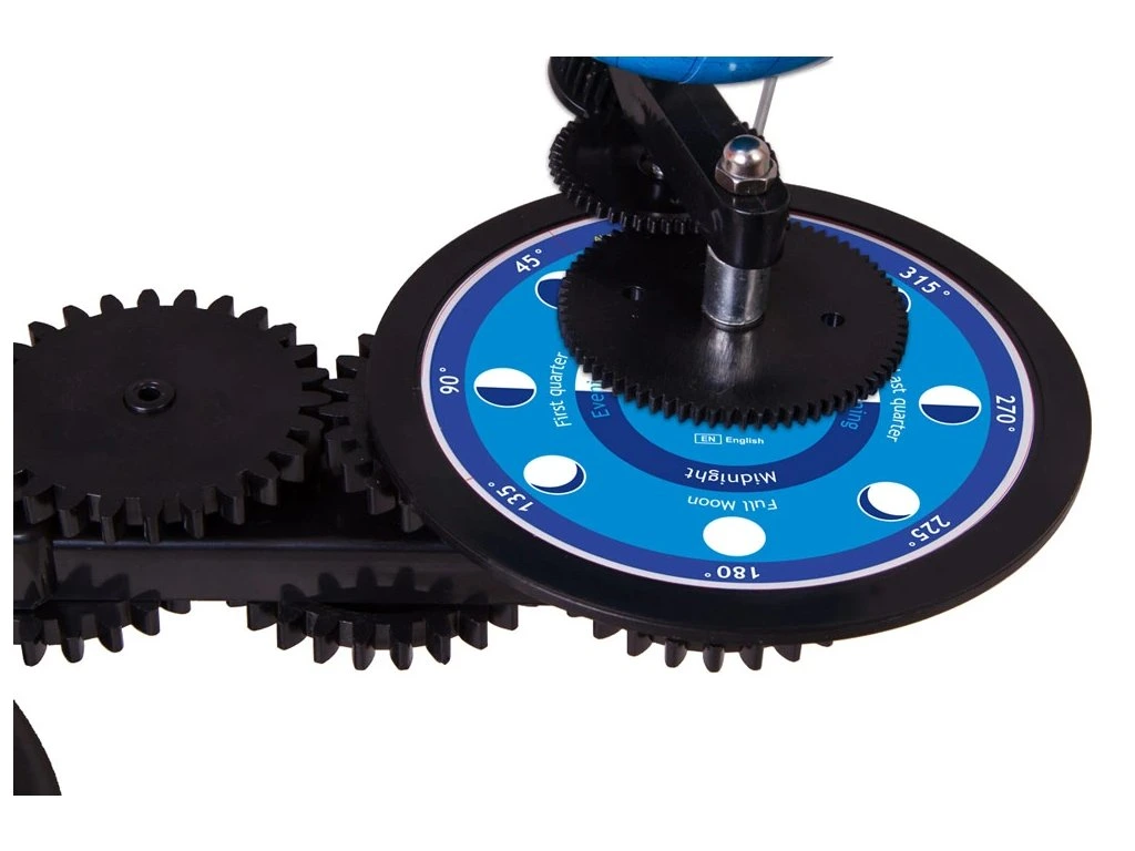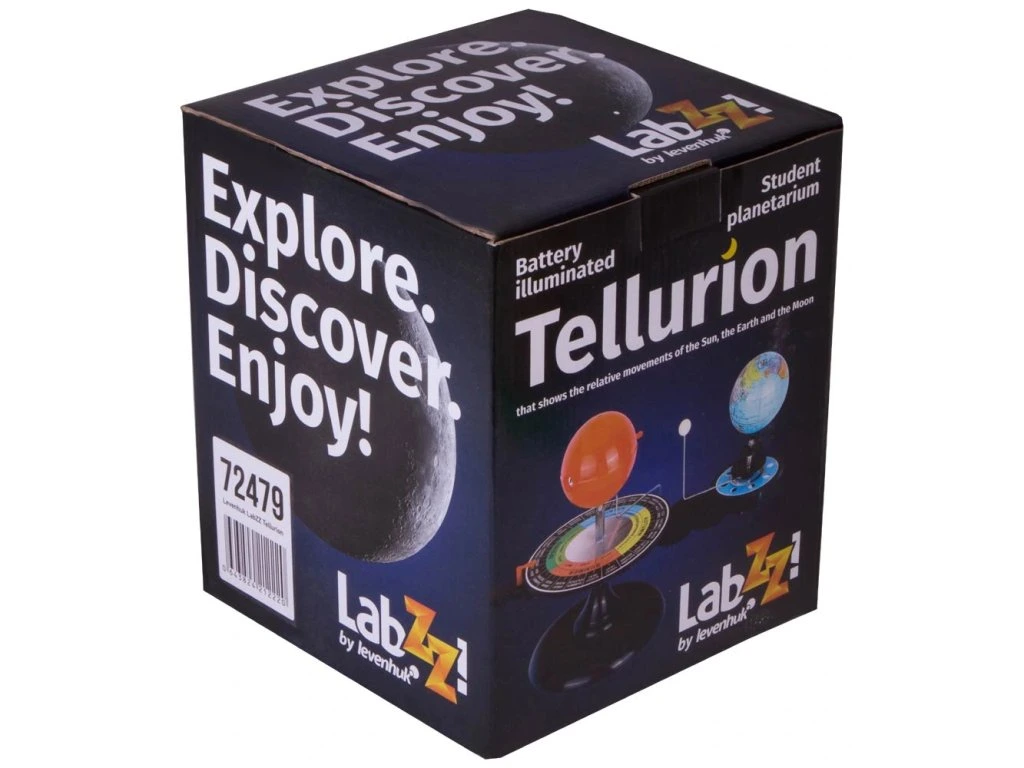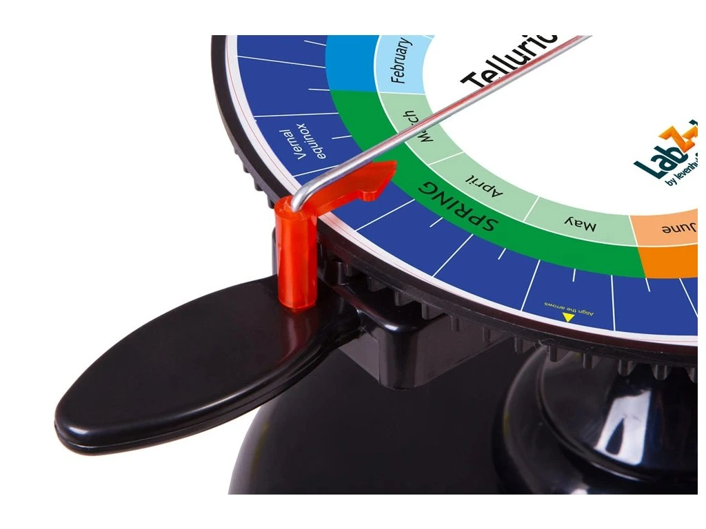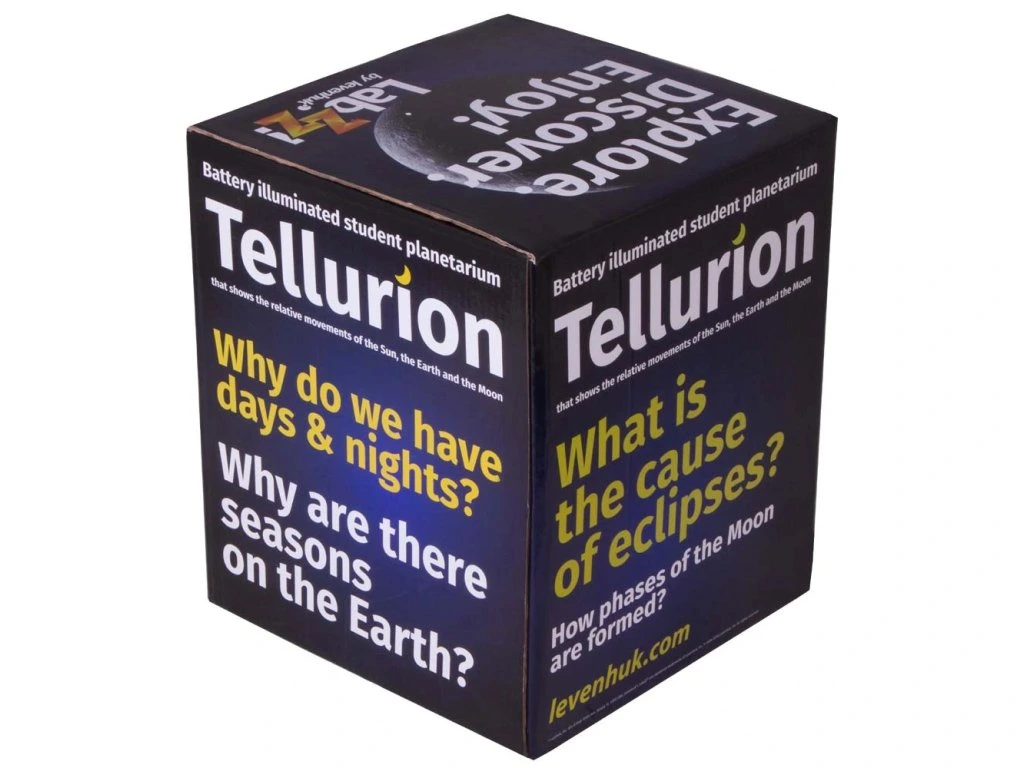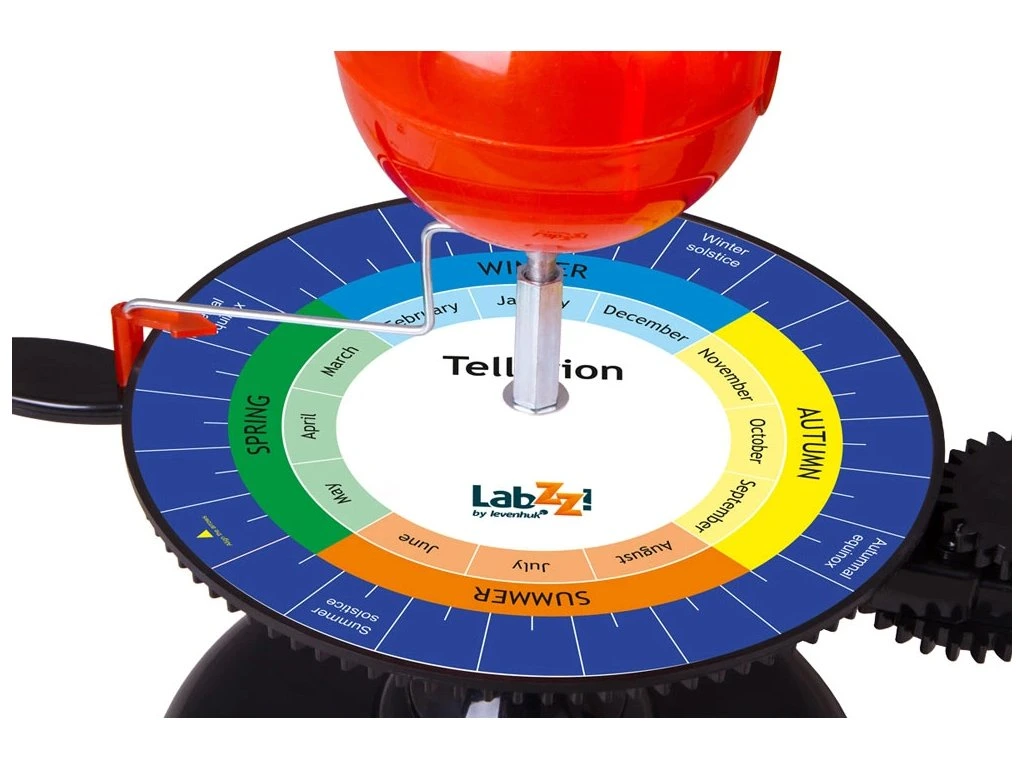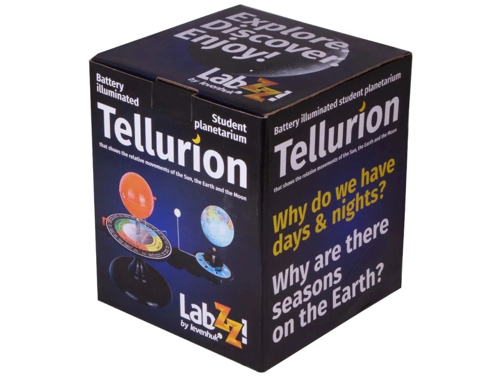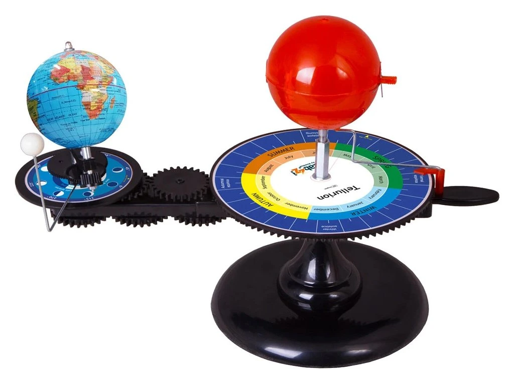 Tellurium (Zemní stroj) Levenhuk je stolní mechanický model na demonstraci pohybu Země a Měsíce okolo Slunce. S jeho pomocí se dítě dozví, proč se mění roční období, Měsíc přibývá a ubývá a rok se dělí na dvanáct měsíců. Tellurium bude výbornou vizuální pomůckou na hodinách astronomie a zeměpisu ve škole.