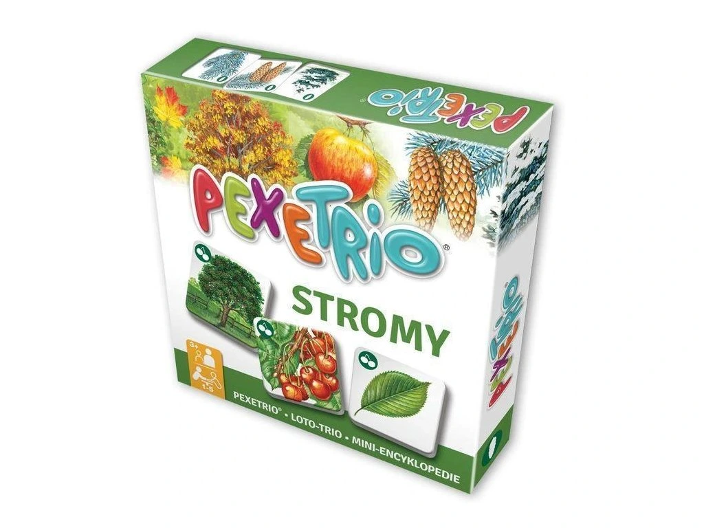Pexetrio STROMY je zábavná hra inspirovaná pexesem, která děti zároveň i vzdělává. Děti se naučí pojmenovat různé druhy stromů, poznávat jejich plody a listy podle hesla „škola hrou".