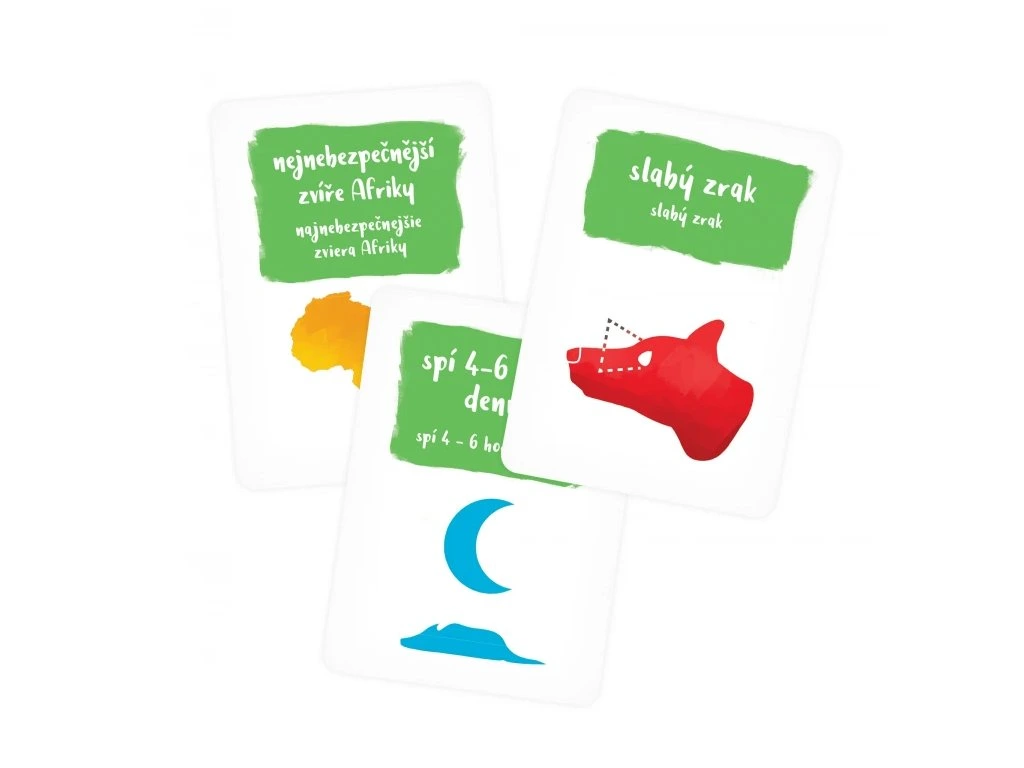 Je nosorožec sudokopytník? Spí žirafa 4-6 hodin, nebo se živí bambusem? Pidikarty jsou svižná a jednoduchá paměťová kartová hra, ve které se navíc dozvíte odpovědi na výše položené otázky a množství dalších informací!Herní mechanismus: Na začátku hry si každý hráč vezme 5 karet. Následně uprostřed připraví z dalších karet mřížku 3 x 3 karty, otočené lícem (obrázkem zvířete či rostliny) nahoru. Hráč ve svých tazích otáčí postupně karty z jednoho vybraného řádku či sloupce a snaží se uhodnout, jaká informace se nachází na druhé straně dané karty (zároveň si tak opakováním danou informaci zapamatuje). Když se mu podaří uhodnout všechny tři informace, jednu z karet odhodí a nahradí ji jednou z vlastního balíčku. Vyhraje ten hráč, který se jako první zbaví svých karet.