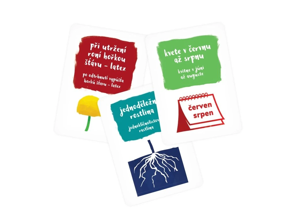 Je náprstek jedovatý? Má pomněnka raději teplo, nebo chlad? Pidikarty jsou svižná a jednoduchá paměťová kartová hra, ve které se navíc dozvíte odpovědi na výše položené otázky a množství dalších informací!Herní mechanismus: Na začátku hry si každý hráč vezme 5 karet. Následně uprostřed připraví z dalších karet mřížku 3 x 3 karty, otočené lícem (obrázkem zvířete či rostliny) nahoru. Hráč ve svých tazích otáčí postupně karty z jednoho vybraného řádku či sloupce a snaží se uhodnout, jaká informace se nachází na druhé straně dané karty (zároveň si tak opakováním danou informaci zapamatuje). Když se mu podaří uhodnout všechny tři informace, jednu z karet odhodí a nahradí ji jednou ze svého balíčku. Vyhraje ten hráč, který se jako první zbaví svých karet.