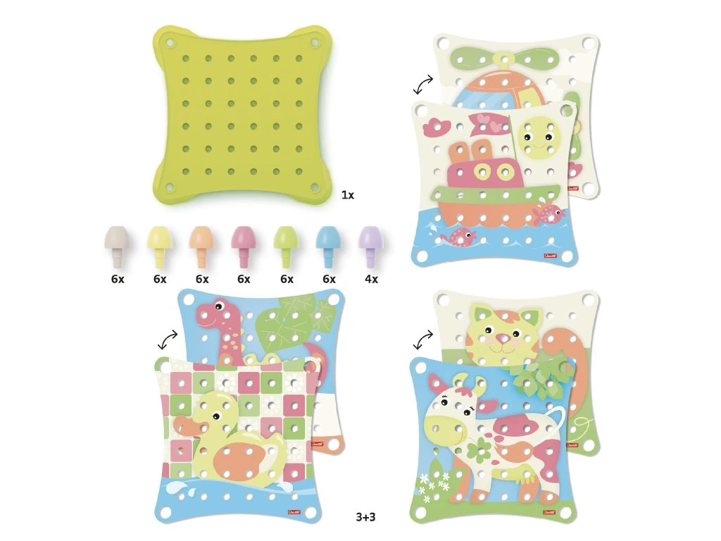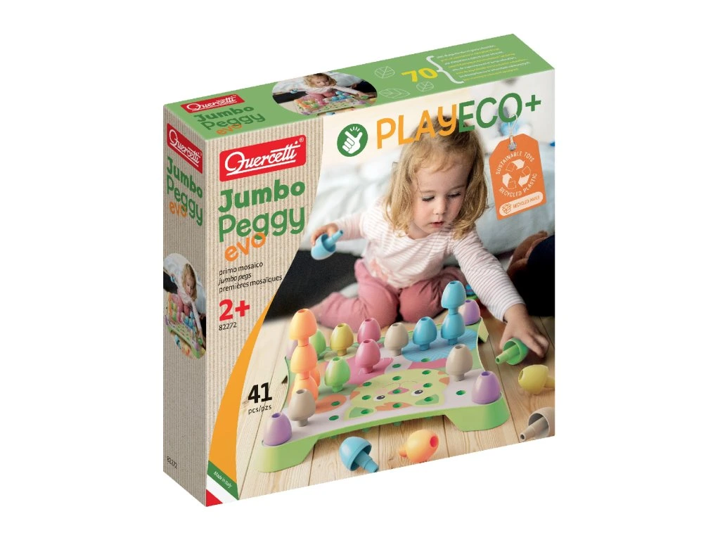 Ekologická stavebnice pro malé tvůrce!Jumbo Peggy EVO je ideální první hra s kolíčky pro děti od 2 let. Díky velkým pastelovým kolíčkům si děti mohou vytvářet první mozaikové obrázky nebo stavět vysoké věže, přičemž si přirozeně rozvíjejí jemnou motoriku, koordinaci a tvořivost.