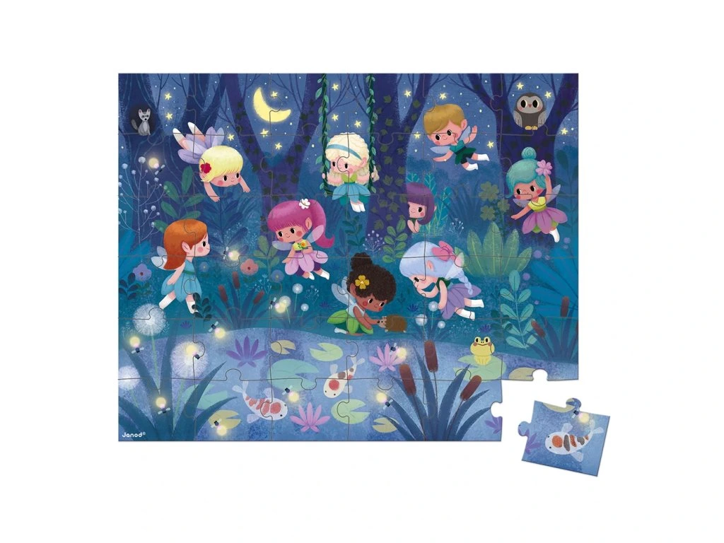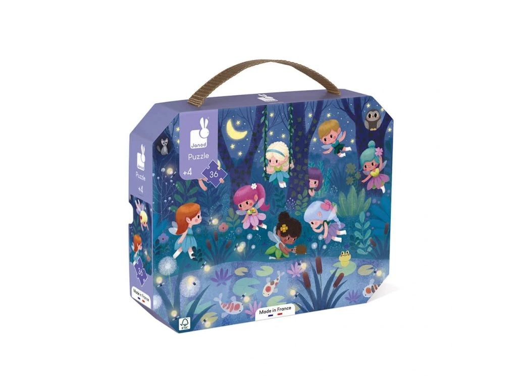 Nádherné dívčí puzzle s motivem Noční víly v lese. Tyto kartonové puzzle s 36 ks dílky určitě okouzlí a zabaví nejeden malou slečnu. Puzzle jsou balené v originálním a praktickém kufříku se zavíráním, takže jsou vždy uklizené a zároveň jsou pěkným doplňkem do dětských pokojíčků.Součástí balení je také plakát, který se může použít jako šablona. Puzzle rozvíjí logické myšlení, pozornost, paměť, představivost, jemnou motoriku, a zároveň se děti učí vnímat vztah mezi částmi a celkem.Vhodné pro děti: od 4 let