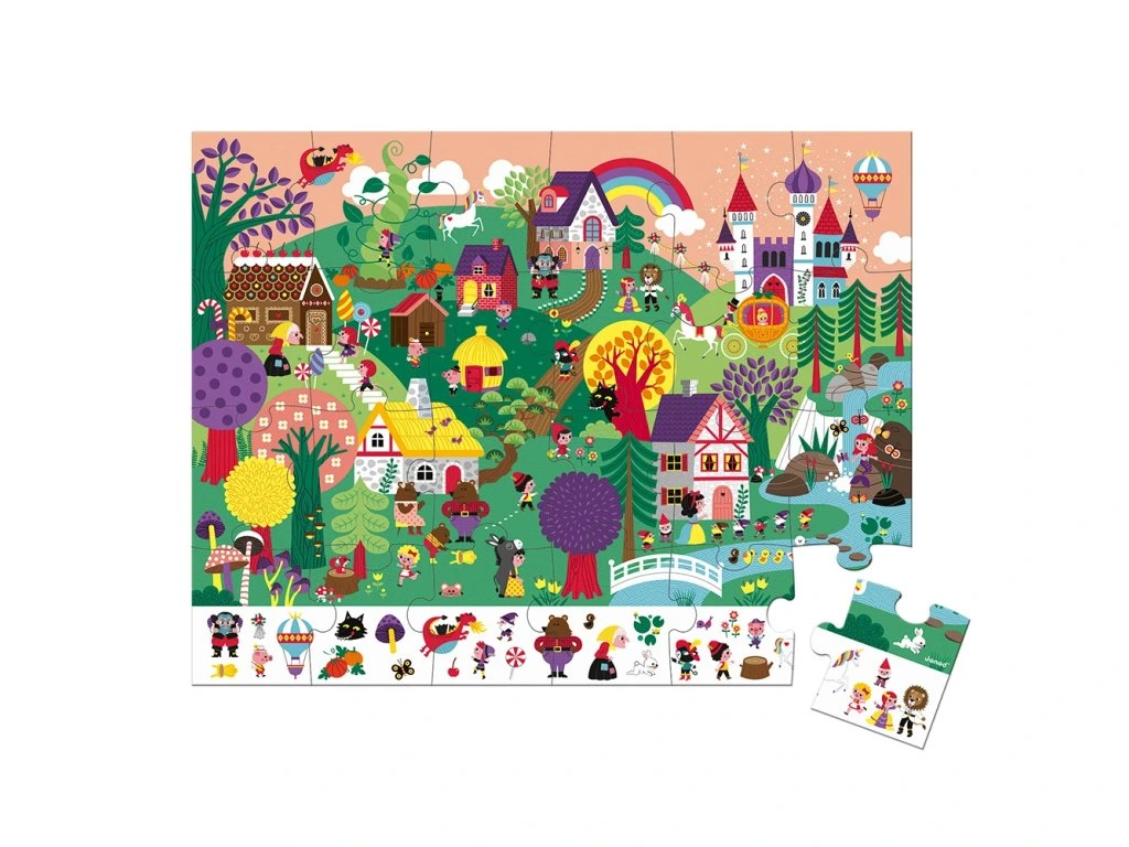 Nádherné pozorovací puzzle s motivem Pohádky. Tyto kartonové puzzle s 24 ks dílky určitě očarují a zabaví nejedné malé dítě. Na okraji složeného puzzle se nachází několik různých obrázků, které jsou zakomponovány v ilustrovaném obrázku složených puzzle. Úkolem dítěte je co nejdříve najít jednotlivé obrázky.Puzzle jsou baleny v originálním a praktickém kufříku se zavíráním, takže jsou vždy uklizené a zároveň jsou pěkným doplňkem do dětských pokojíčků.Součástí balení je i plakát, který se může použít jako šablona. Puzzle rozvíjí logické myšlení, pozornost, paměť, představivost, jemnou motoriku, a zároveň se děti učí vnímat vztah mezi částmi a celkem.