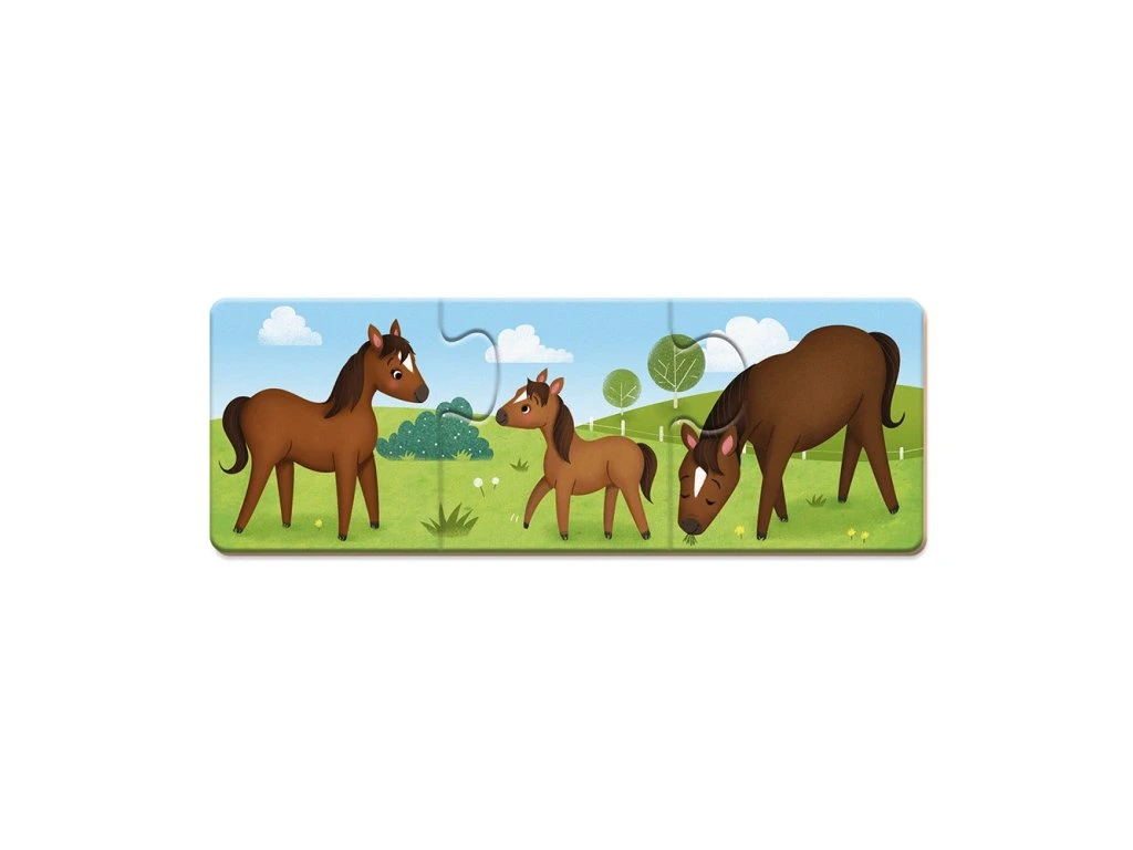 Mláďátka se příliš bavila a ztratila se svým rodičům. Pomozte jim najít maminku a tatínka! Tato hra pomáhá dětem seznámit se se světem zvířat a jejich rodinnými příslušníky. Skládání puzzle zase rozvíjí jejich jemnou motoriku.Obsahuje 30 ks kartonových puzzle.