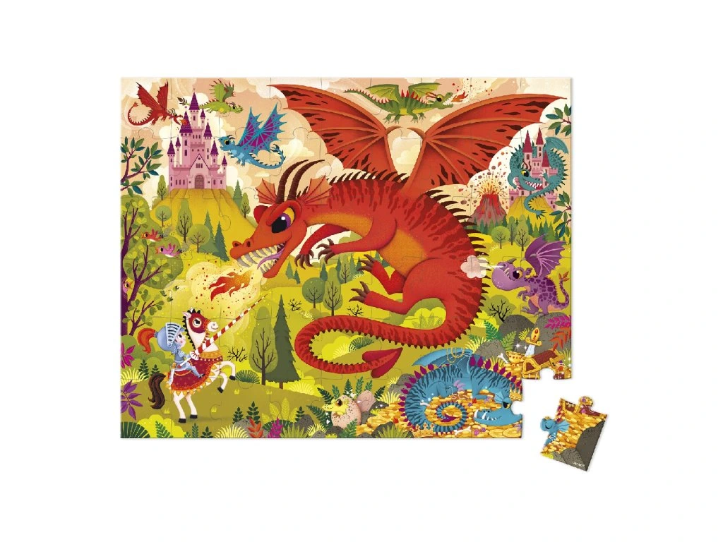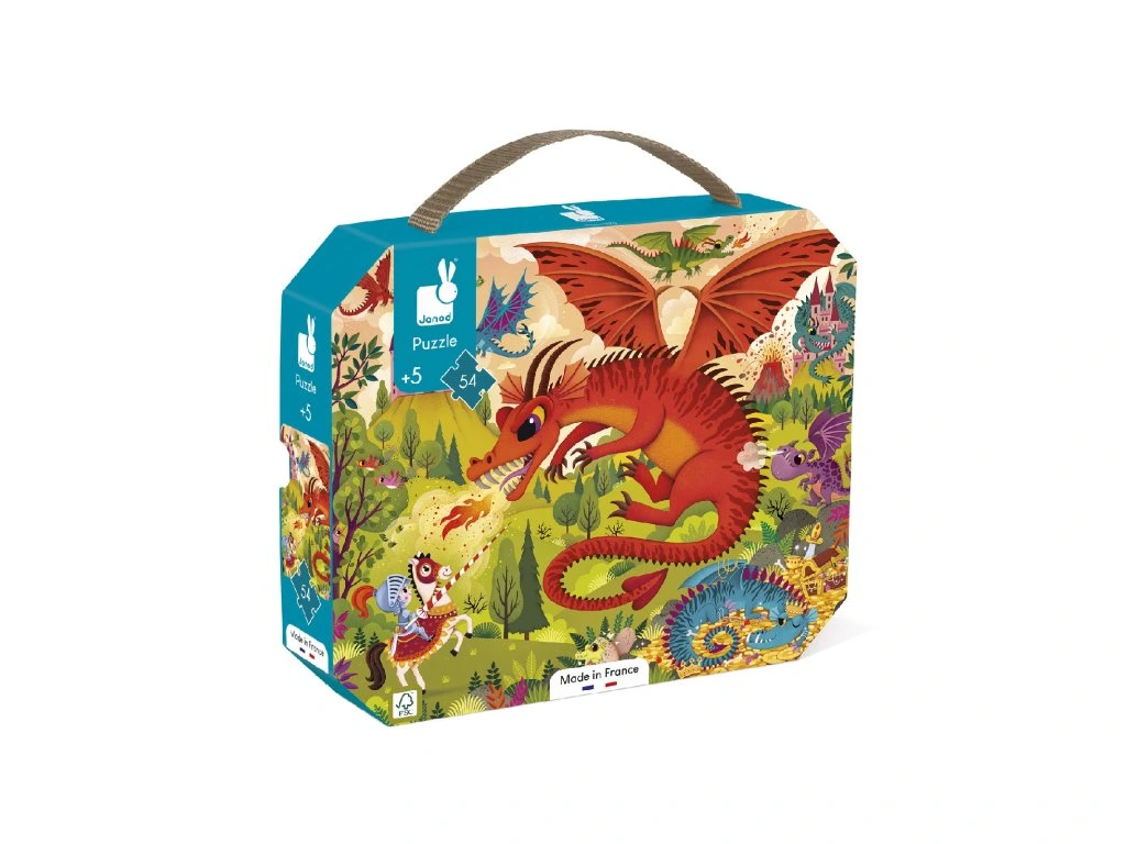 Draci vtrhli do království! Toto 54-dílné kartonové puzzle stimuluje dětskou představivost a ponoří děti do fantastického dobrodružství plného záhad a legendárních tvorů. Puzzle s rozměry 50 x 40 cm je uložené v praktickém pouzdře, takže ho můžete jednoduše přenášet kamkoliv.