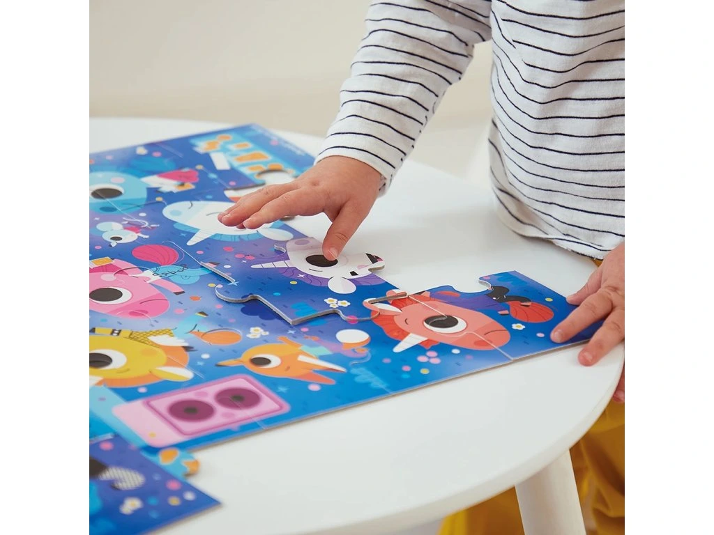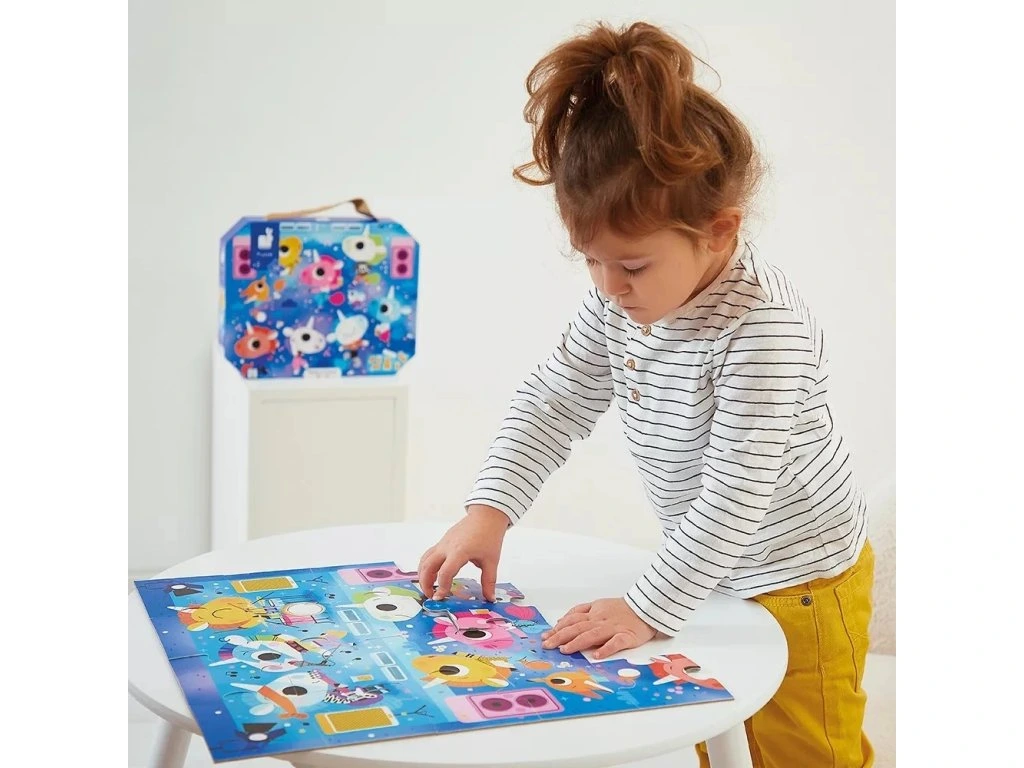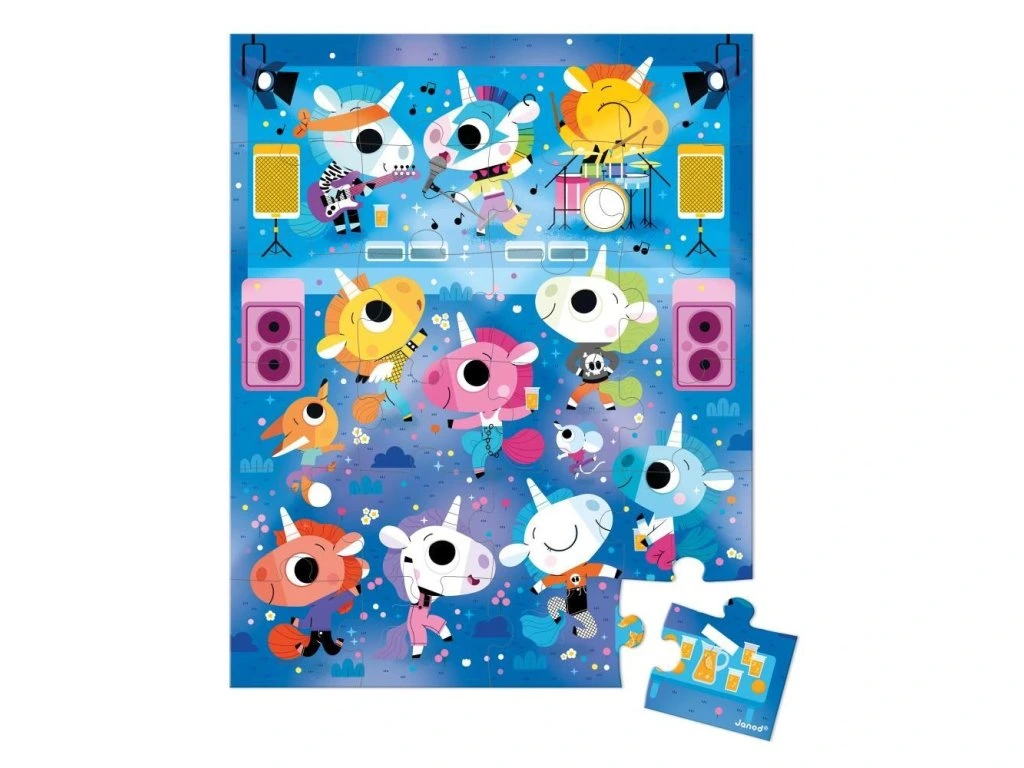 Je čas kývat hlavou do rytmu! Toto 24dílné puzzle zve děti od 3 let do pohádkového hudebního vesmíru rockové skupiny jednorožců. Každý dílek odhaluje další detaily koncertu, přičemž podporuje jemnou motoriku a rozvíjí představivost malých skladatelů.