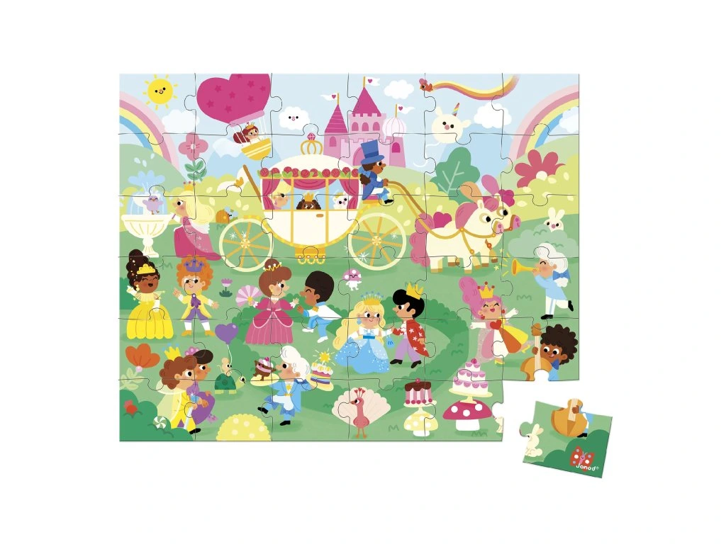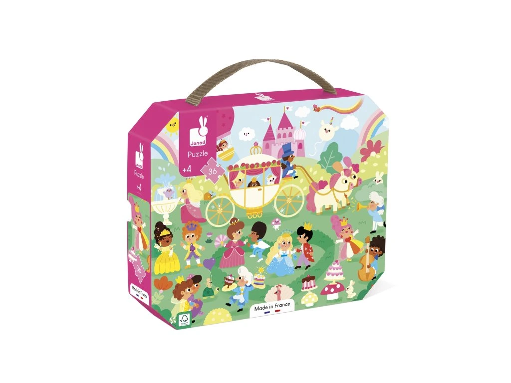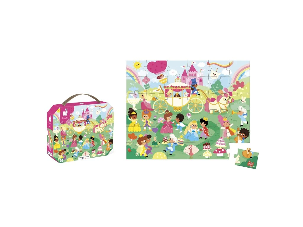 Toto krásné kartonové puzzle s princeznami obsahuje 36 dílků a přiložený plakát, který pomůže vašemu dítěti skládačku složit. Puzzle je dodáváno v pěkném pouzdře, takže je jednoduché ho přenášet kamkoliv.