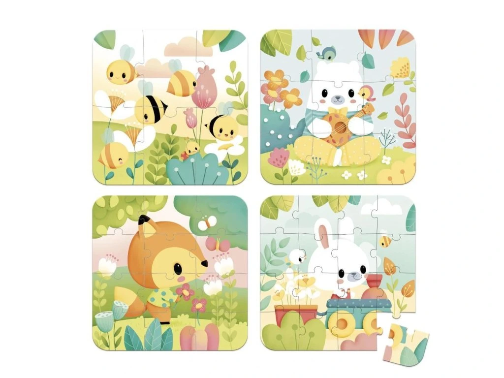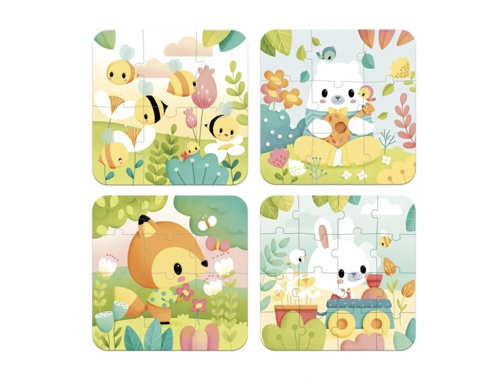 - 4 puzzle s rostoucím počtem dílků (6, 9, 12, 16)