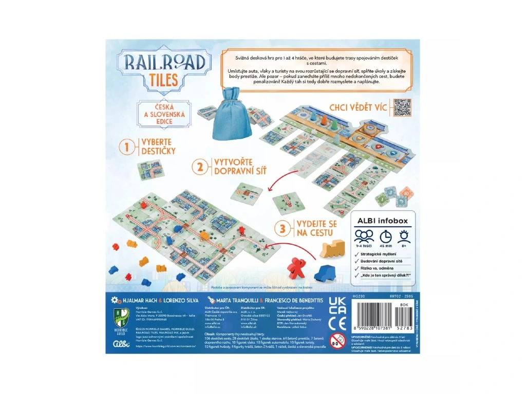 Svižná stolní hra pro 1 až 4 hráče, ve které se z vás stanou stavitelé dopravních tras. Spojováním dílků s cestami vytváříte propojení mezi různými místy, plníte úkoly a sbíráte prestiž. Jednoduchá pravidla zajistí rychlé pochopení hry, zatímco svižné tempo a krásné výtvarné zpracování udrží pozornost dětí i dospělých. Ideální volba na rodinné večery i krátké herní přestávky.