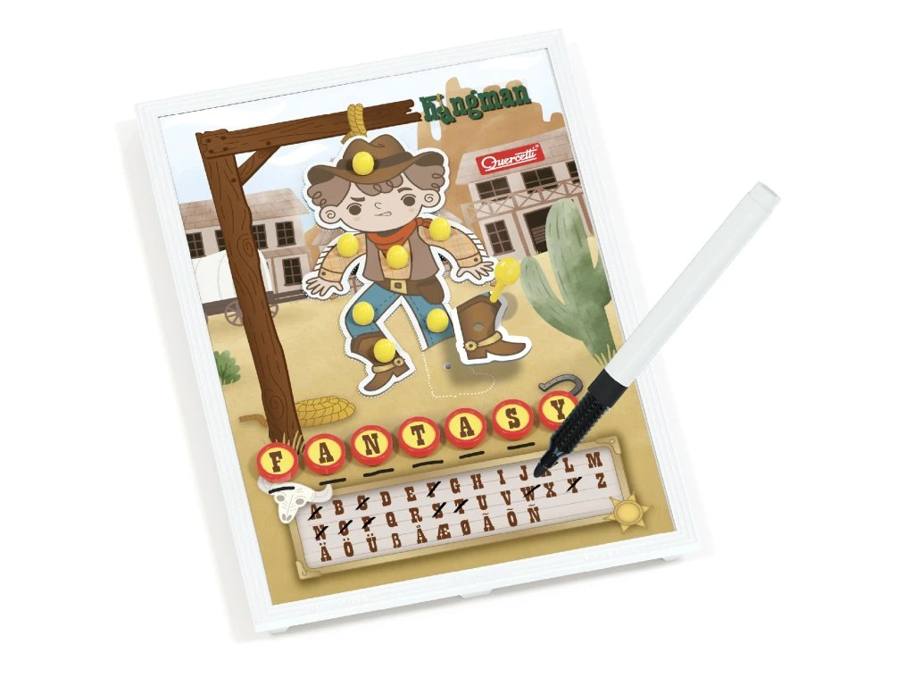 Hráč – kat si myslí slovo a napíše k němu pod šibenici pomůcku. Soupeř se snaží slovo uhodnout po jednotlivých písmenech. Pokud určí správné písmeno, kat mu ho ve slově vyznačí; v opačném případě přiloží na šibenici část kovbojova těla.