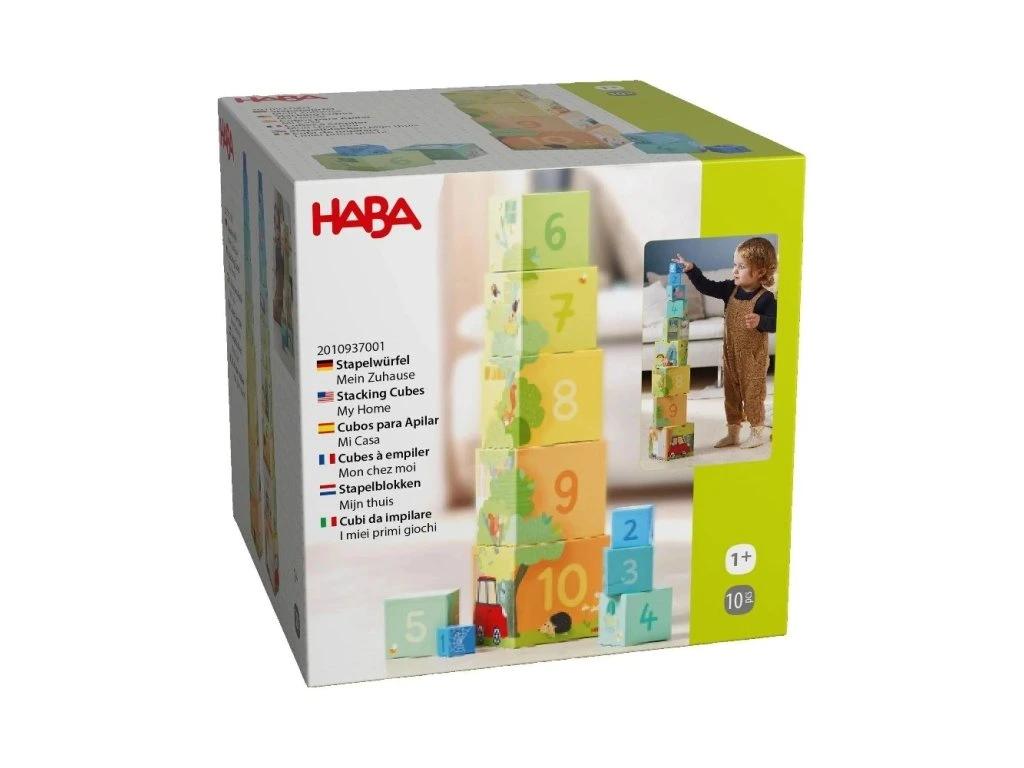Pracuj, pracuj, stavěj vysoký dům! Děti objeví, jak vysoký může být tento domeček, když kostky naskladají podle velikosti. Každé patro skrývá detaily připravené na objevování a podněcuje představivost. Extra tip: Kdo najde motivy na vrchu kostek na každém patře?