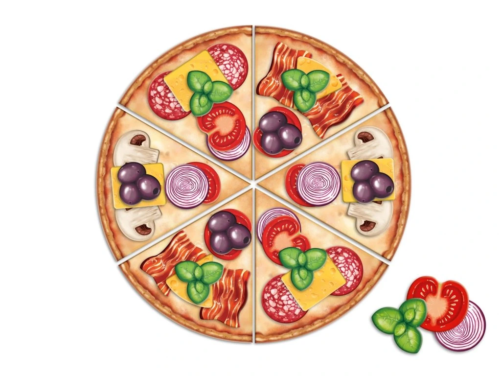 Pizza je originální skladačka a hra v jednom pro děti od 2 do 4 let. Děti se při vytváření různých variant pizzy naučí poznávat barvy, potraviny, druhy zeleniny a zároveň rozvíjejí kreativitu i vyjadřovací schopnosti. Tato vzdělávací skladačka neobsahuje žádné plasty a je vhodná pro děti od 2 let.