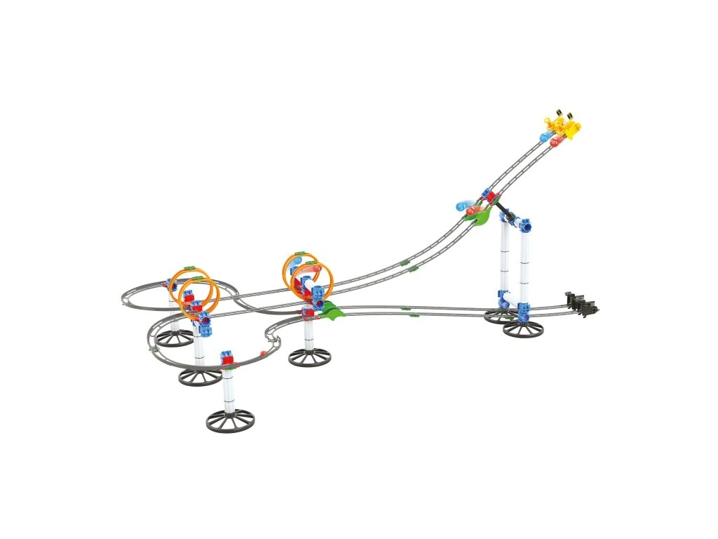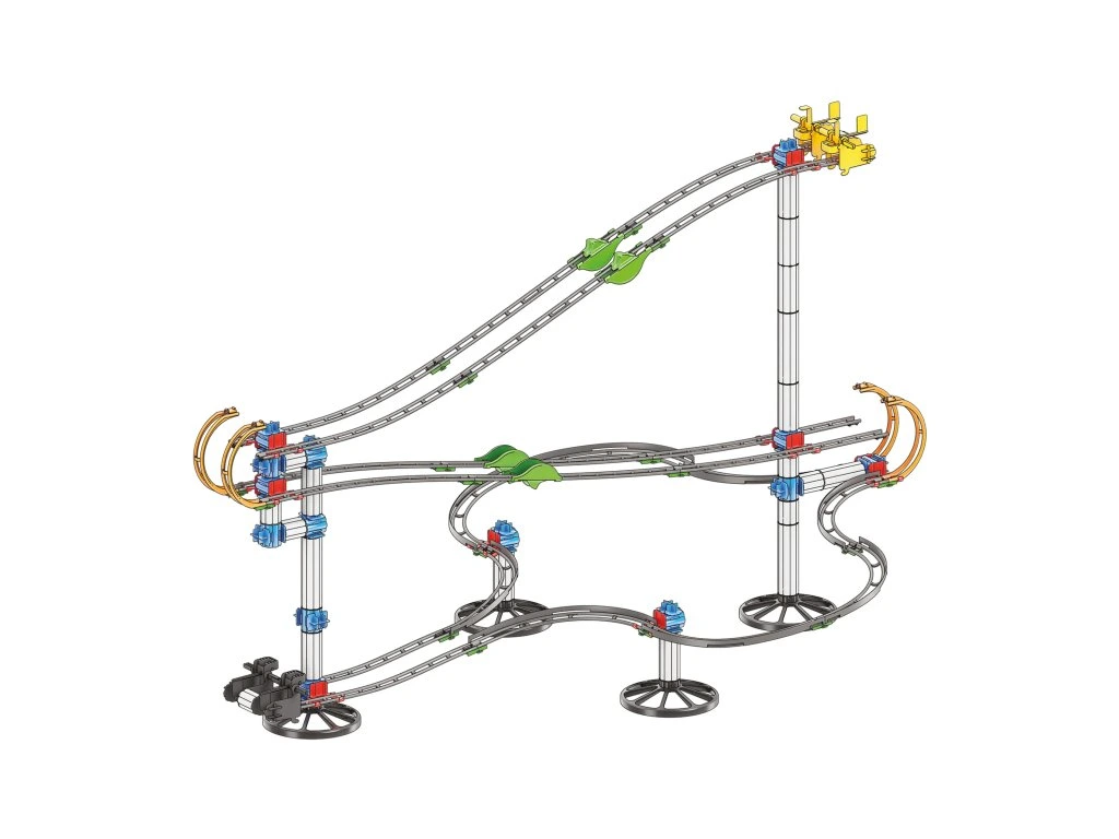 Barevná tobogán umožňuje dětem sestavit různorodé dráhy, které jsou obohacené o mostíky, lopatkové kola a zásobníky s pružinou umístěné na začátku a konci dráhy, což zajišťuje...