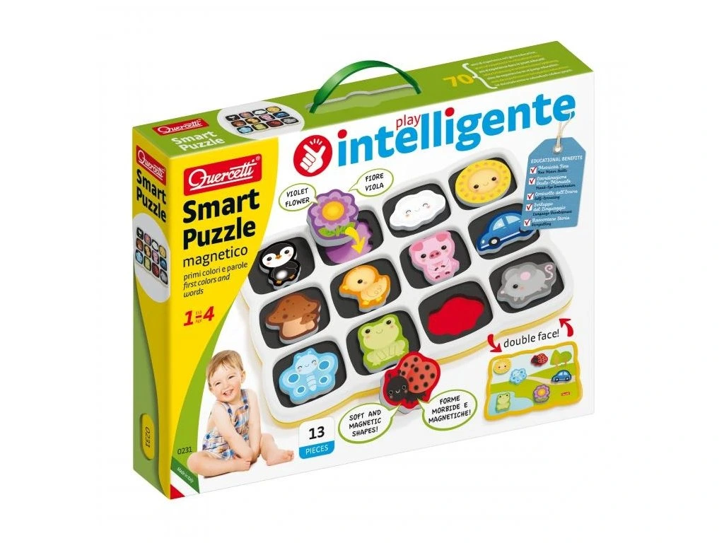 Magnetická hračka, která roste spolu s dítětem!Quercetti Smart Puzzle Primi Colori je oboustranná magnetická logická hra navržená speciálně pro batolata a menší děti. Kombinuje jednoduché skládačky s tvořivým hraním a rozvíjí důležité dovednosti – jemnou motoriku, vnímání tvarů a barev, kreativitu i soustředění.