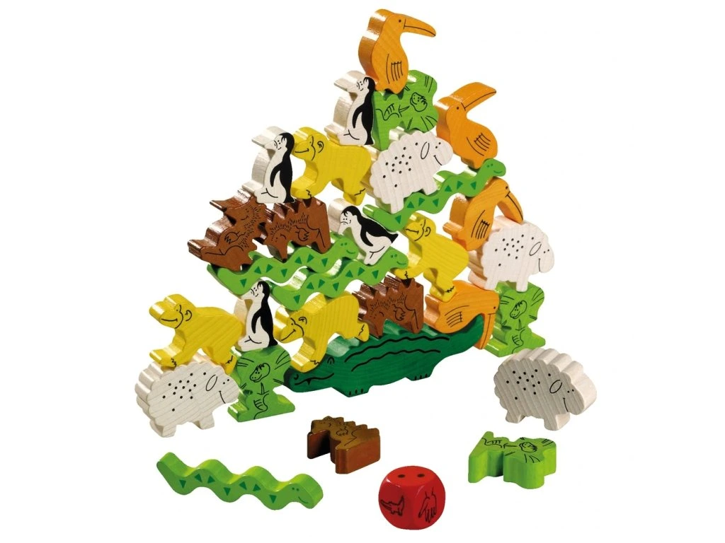 Zvířata si chtějí ukázat, jak umí postavit vysokou pyramidu! Kdo postaví tučňáka na krokodýla, ovci na tučňáka, hada na ovci?Počet hráčů: 2-4 osoby.