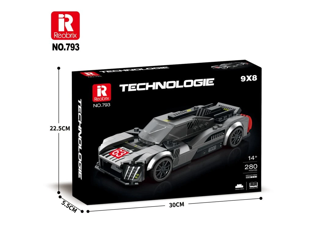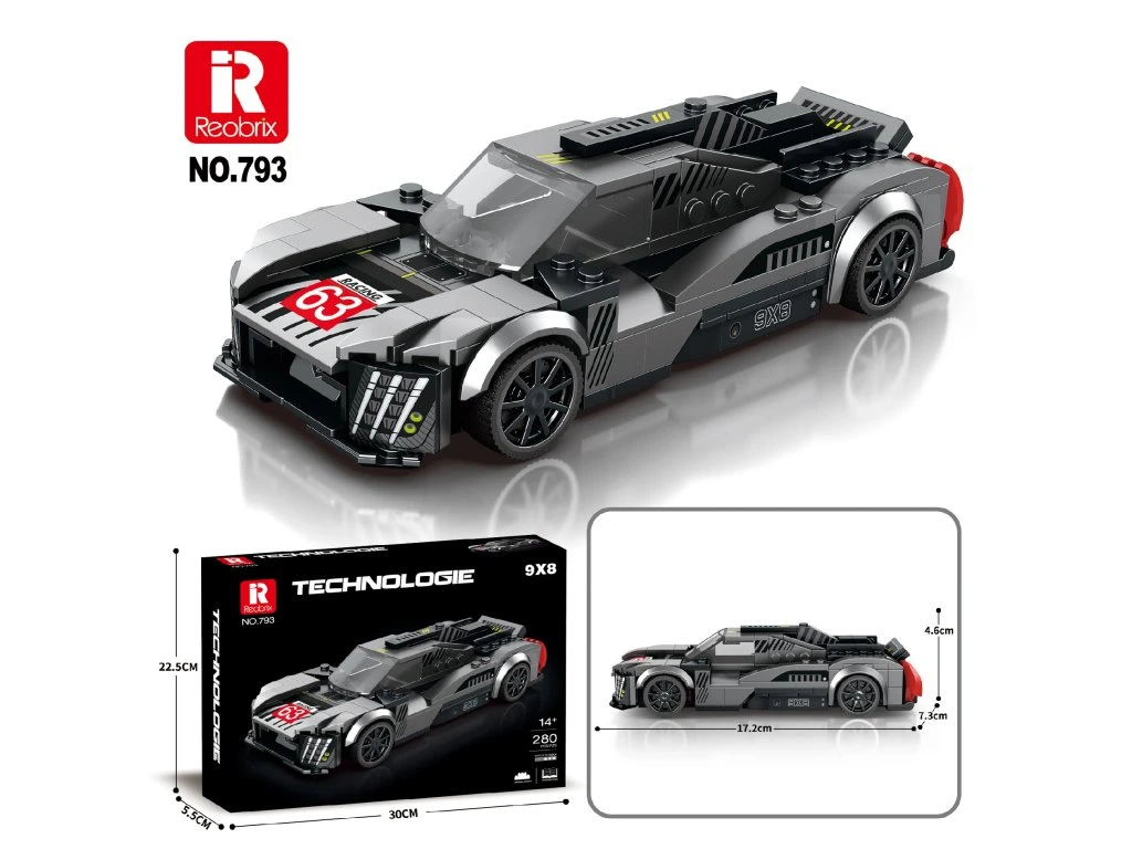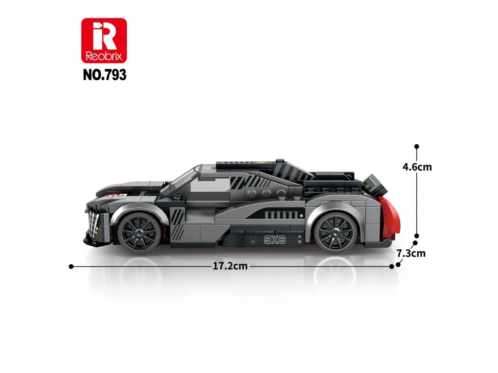 Vstupte do světa rychlosti a futuristického designu! Reobrix 9X8 je model inspirovaný moderním závodním prototypem Peugeot 9X8 (bez licence), který spojuje technologickou přesnost, agresivní linie a elegantní sportovní charakter. Z 280 dílků vznikne kompaktní, ale výrazný model v měřítku 1:24, který potěší fanouška motorsportu i milovníky moderních stavebnic. Model se skvěle hodí na vystavení v domácí vitríně, na pracovním stole nebo jako stylový doplněk sbírky závodních vozidel Reobrix.