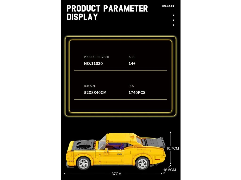 Vstupte do světa americké síly a dravého designu! Reobrix 11030 Hellcat je velkolepý model inspirovaný ikonickým muscle carem Dodge Hellcat (bez licence), který proslavil brutální výkon, masivní konstrukci a nezaměnitelný styl. Díky více než 1740 dílkům nabízí tato stavebnice dlouhé a uspokojující skládání plné precizních detailů, realistických proporcí a charakteristických linií. Hotový model je skutečnou ozdobou každé sbírky — výrazný, propracovaný a nabitý energií klasického amerického automobilismu.