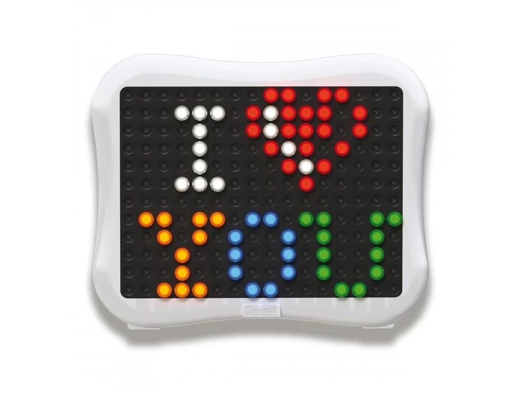 Peg Brite funguje na 3 baterie typu AA (nejsou součástí balení) a přináší nekonečné možnosti na vytváření světelných mozaik, které nadchnou každého malého tvůrce.