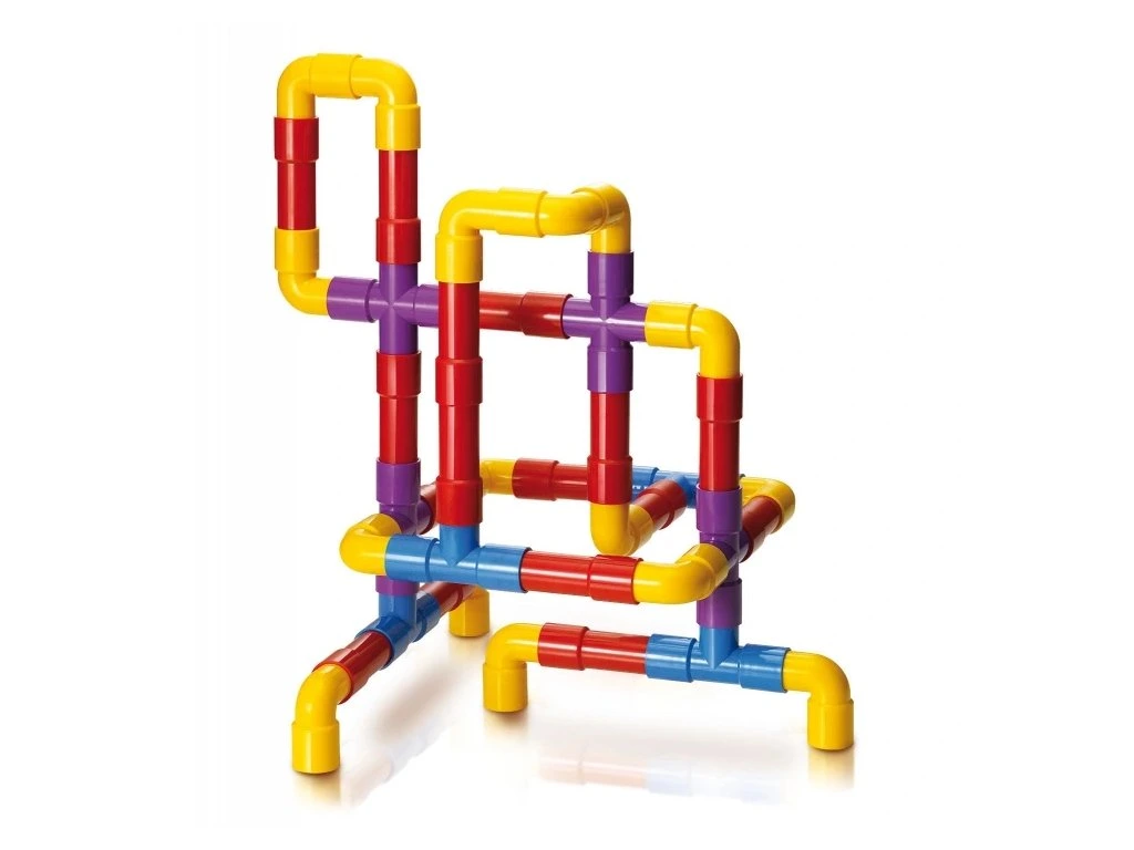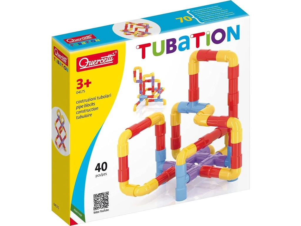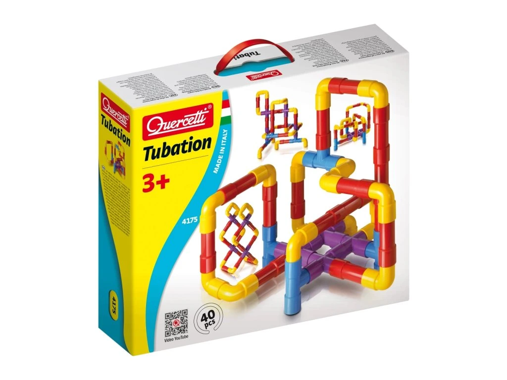 Stavebnice Tubation se skládá ze 40 barevných, do sebe zapadajících dílů různých tvarů, které umožňují dětem vytvářet nekonečné labyrinty potrubí, prostorové tvary, lešení, budovy, zvířata a dokonce i píšťalky nebo cokoli jiného, co si dokážou představit. Tato hračka podporuje rozvoj logického myšlení, kreativity a manuálních dovedností dětí.Všechny díly jsou vyrobeny z nerozbitných a snadno umývatelných plastů špičkové kvality, což zaručuje bezpečné a dlouhodobé používání. Průměr trubky je 2,5 cm, čímž je stavebnice snadno manipulovatelná a vhodná pro malé dětské ruce. Tubation nabízí dětem nekonečné možnosti pro kreativní stavění a zábavu.
