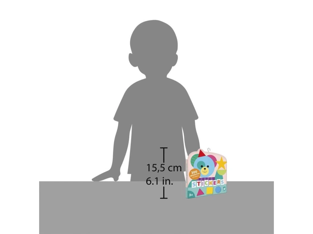 Nálepky jsou vhodné pro děti od 3 let, mají optimální velikost (cca 3 x 3 cm) a výřez na spodní straně pro jednodušší odlepování. Jsou dostupné v různých geometrických tvarech a barvách, přičemž polovina z nich je zdobená roztomilými vzory, což zvyšuje zábavu při hře.