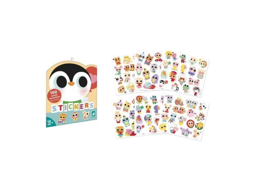 Sada samolepek Malá zvířátka francouzské značky JANOD obsahuje 100 velkých opakovaně použitelných samolepek.