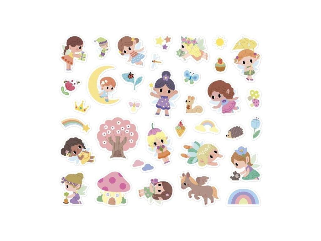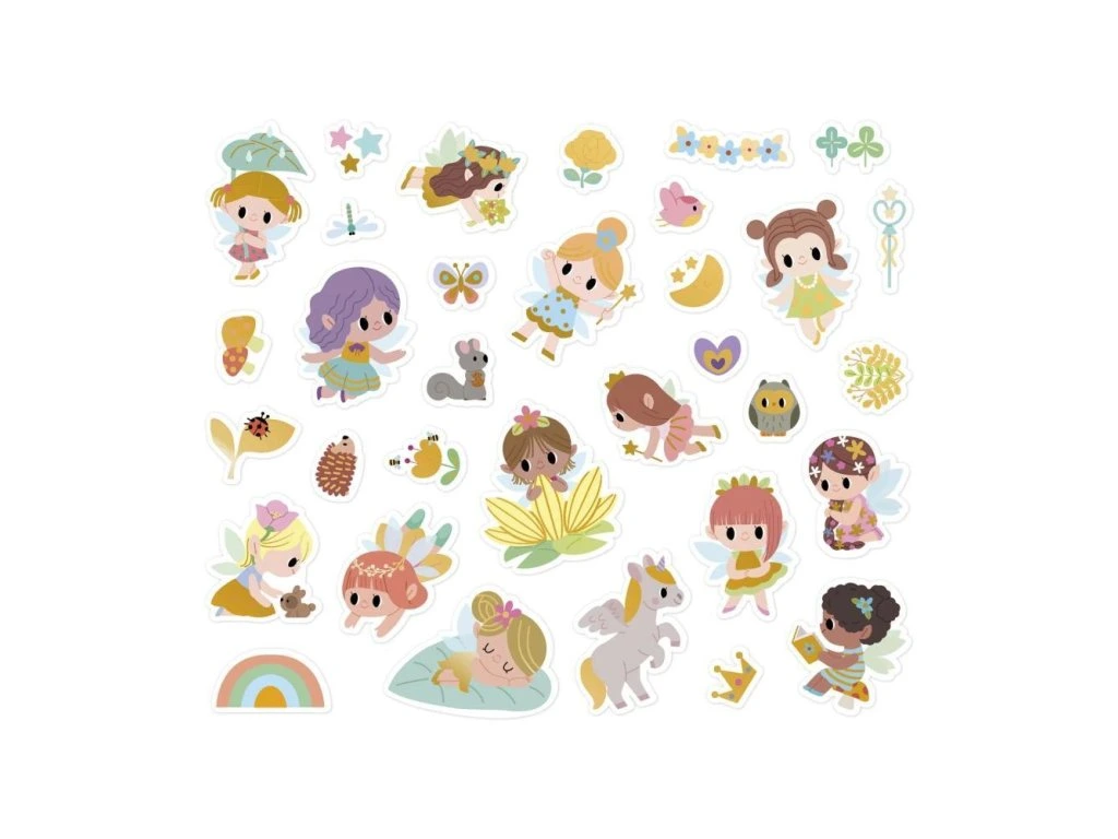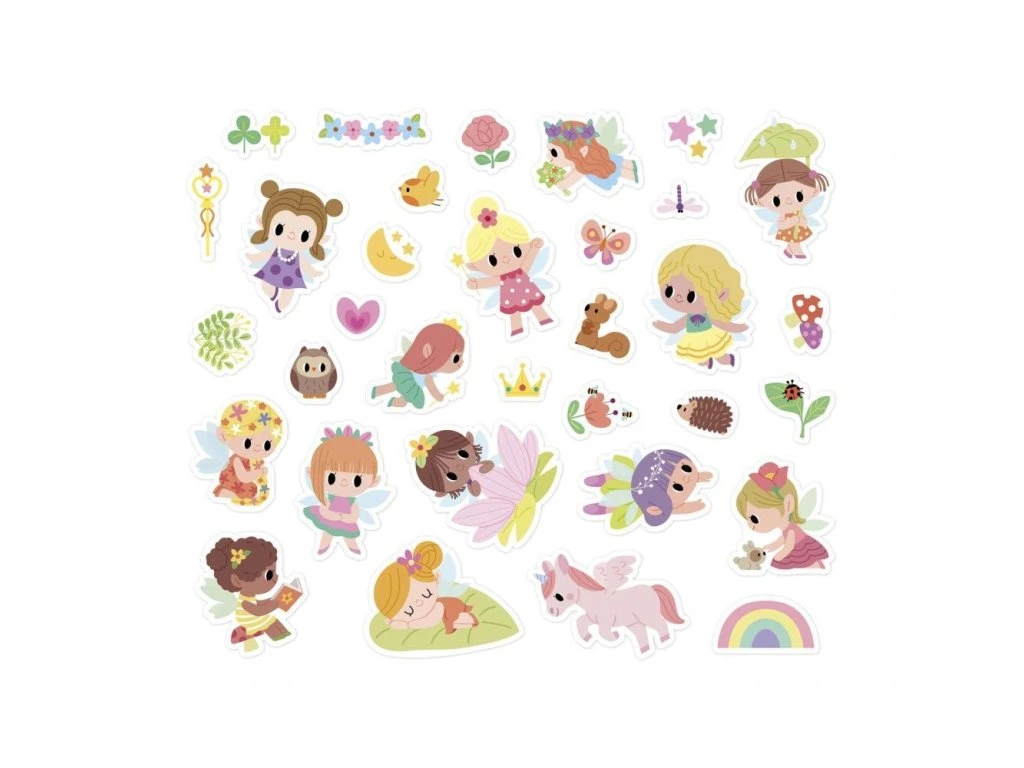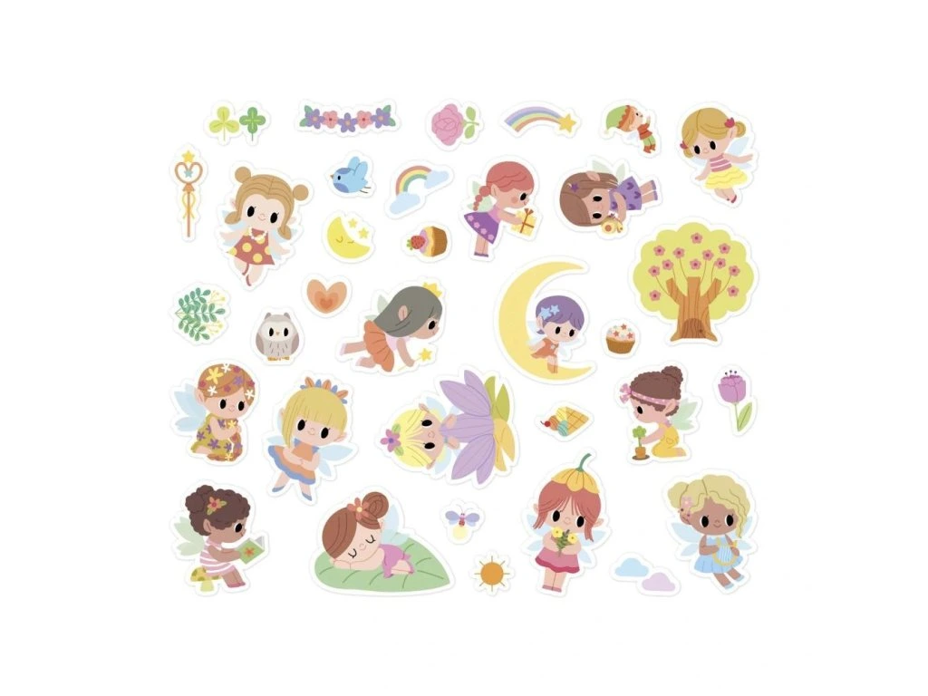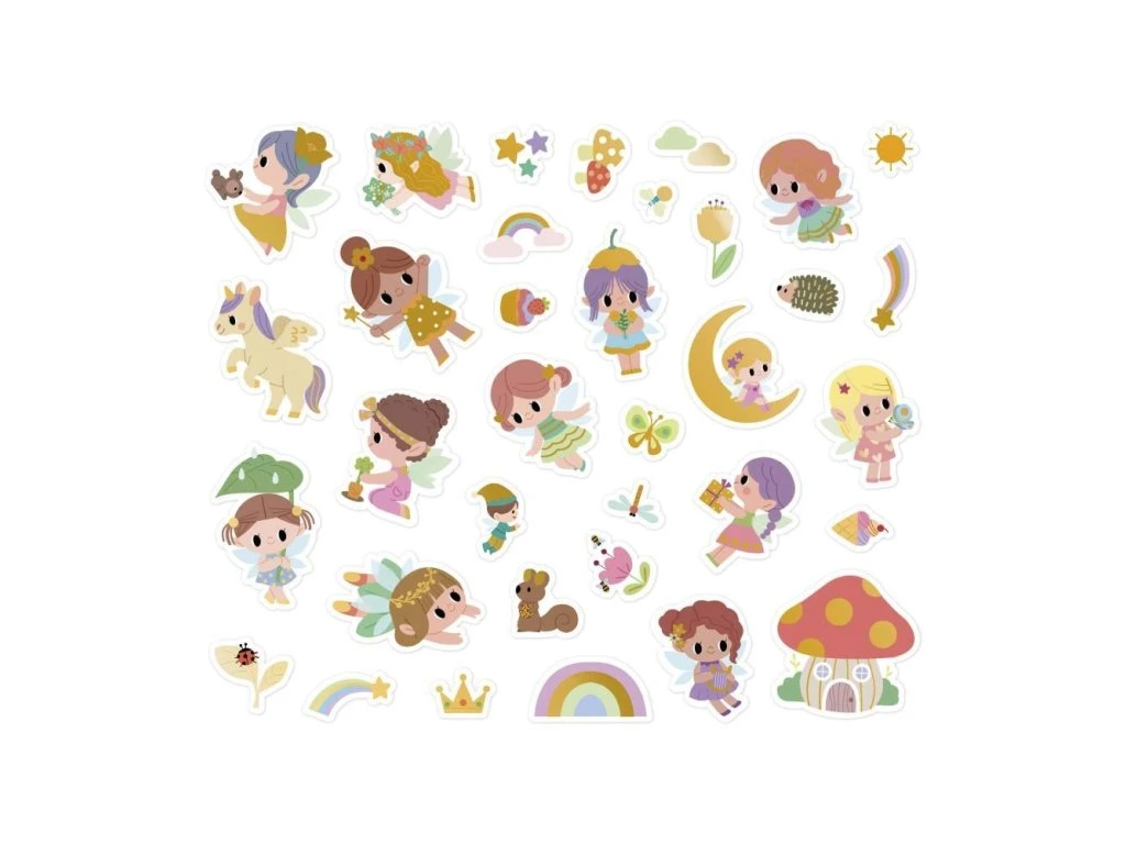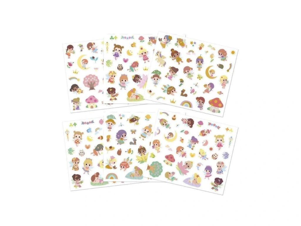 Sada nálepek Víly obsahuje 200 opakovaně použitelných nálepek rozmístěných na 6 hárích.