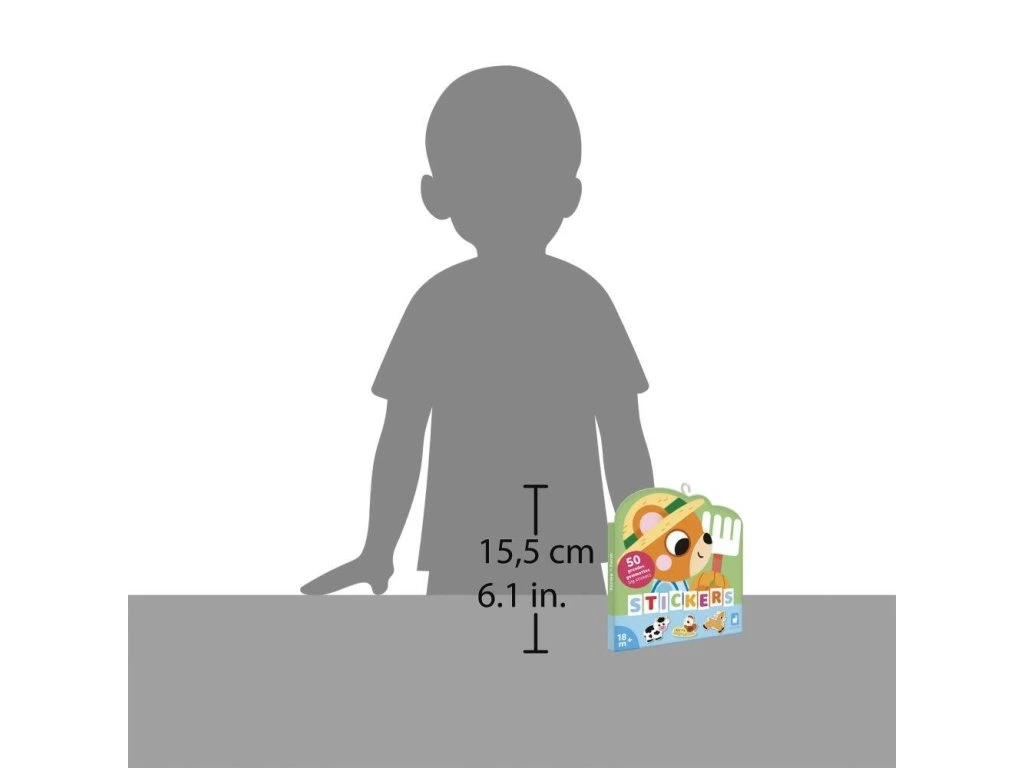 S tolika nálepkami se děti zabaví na dlouhou dobu! Otevřením balíčku ve tvaru medvěda objeví celý venkovský svět: farmářské aktivity, zahradničení a množství roztomilých zvířátek. Nálepky mají velikost cca 7 x 8 cm, což je ideální pro malé ručičky, a poloviční zářez usnadňuje držení a odlepování.