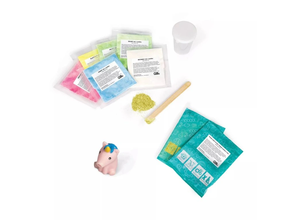 Extra porce zábavy se slizem – s touto kreativní sadou si můžete vyrobit super sliz podle vlastní fantazie. Míchejte barvy a vytvořte různé efekty: svítící ve tmě, úžasně pružný duhový sliz nebo perleťový sliz Jednorožec, který vrací duhu.