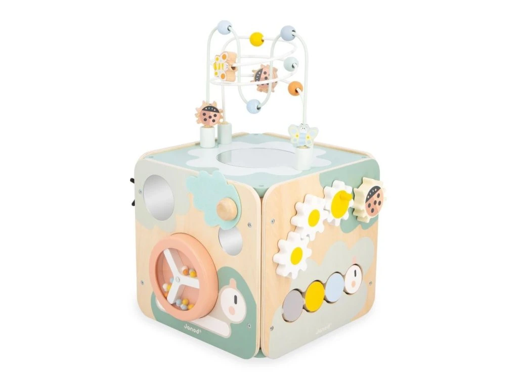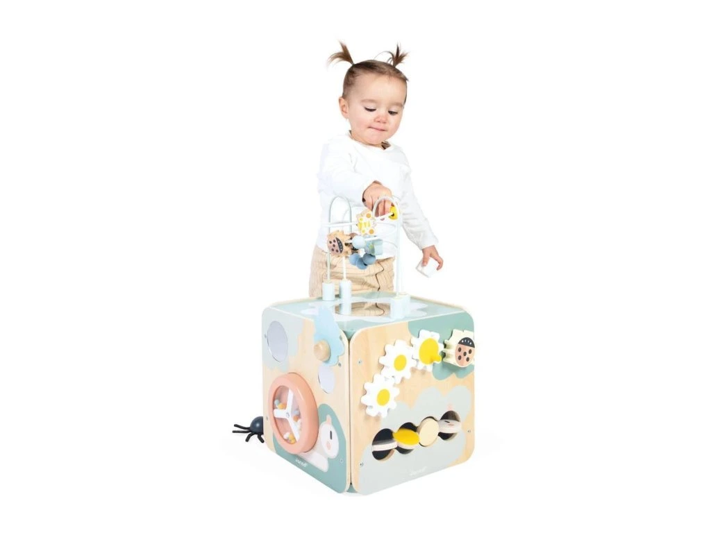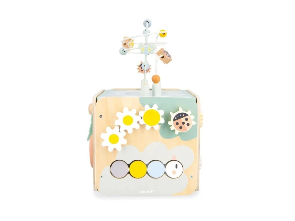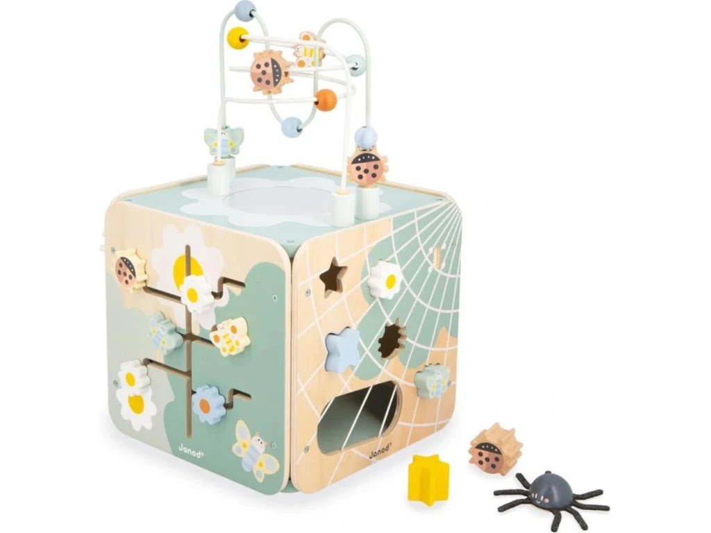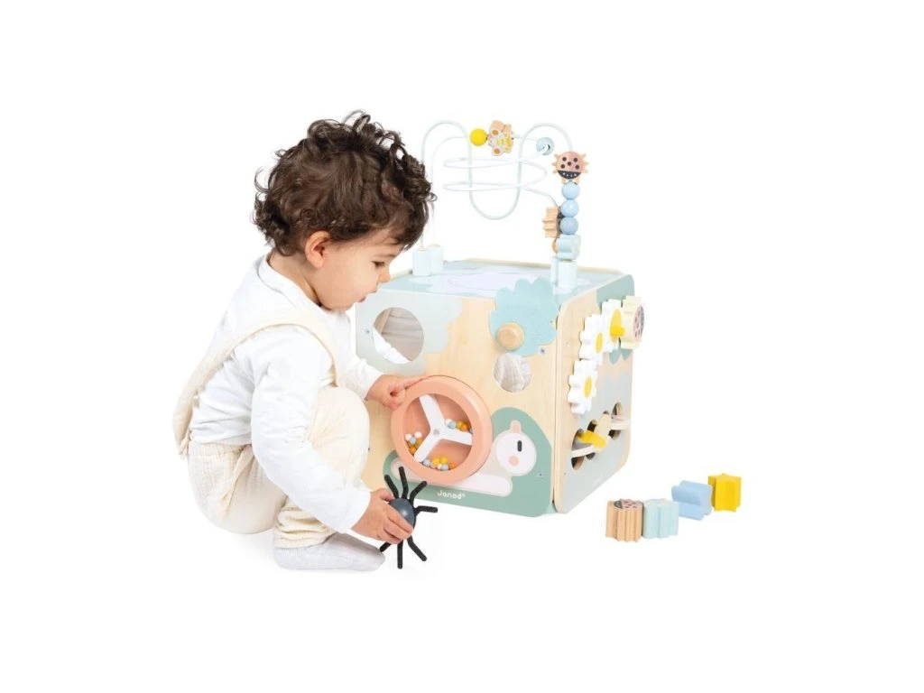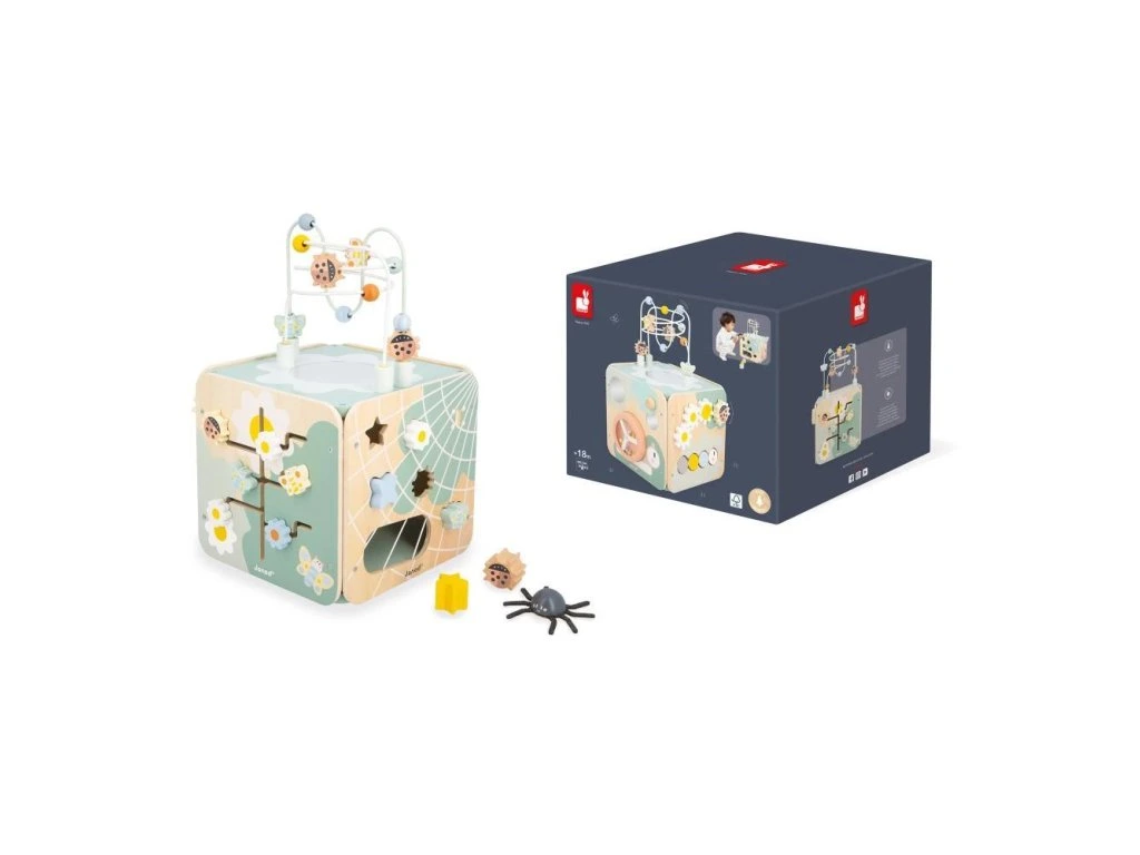 Multifunkční dřevěná kostka s aktivitami s motorickým labyrintem, kterou si každé dítě zamiluje! Nabízí spoustu zábavy a je ideální na rozvoj jemné motoriky, učení prvních tvarů a barev. Kompletní hračka na rané učení stimuluje smysly dětí od 18 měsíců a obsahuje až 11 aktivit rozmístěných po stranách kostky.