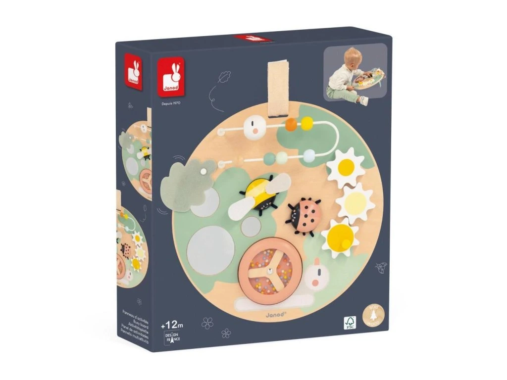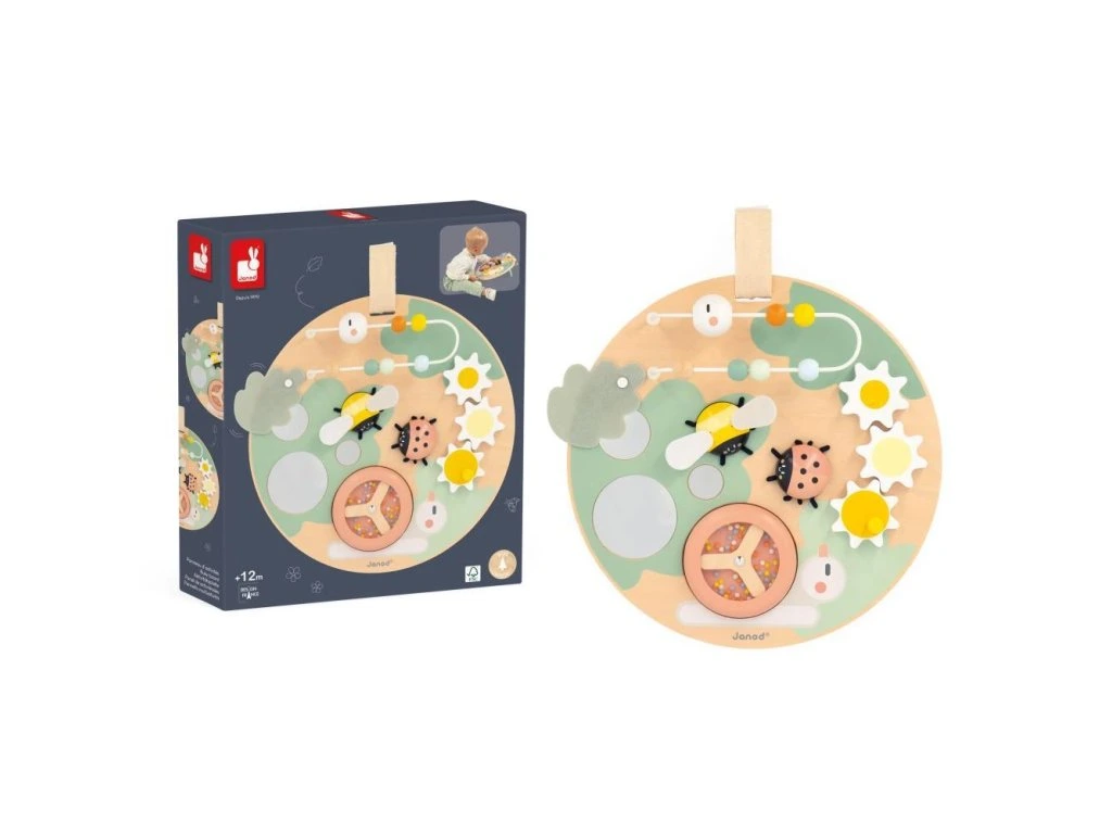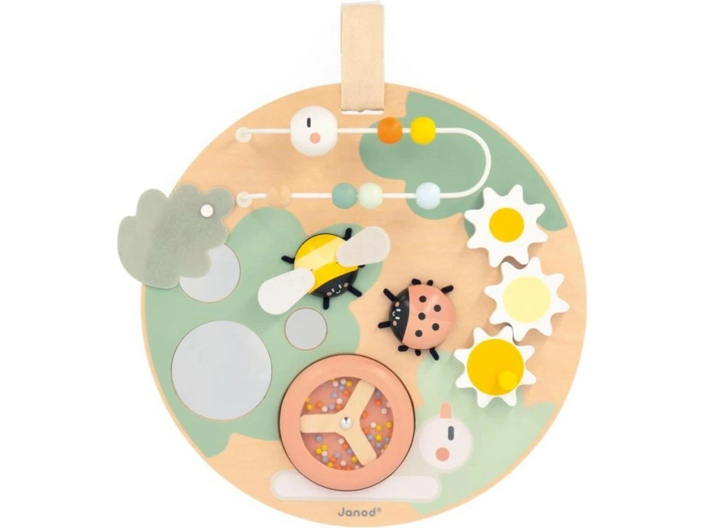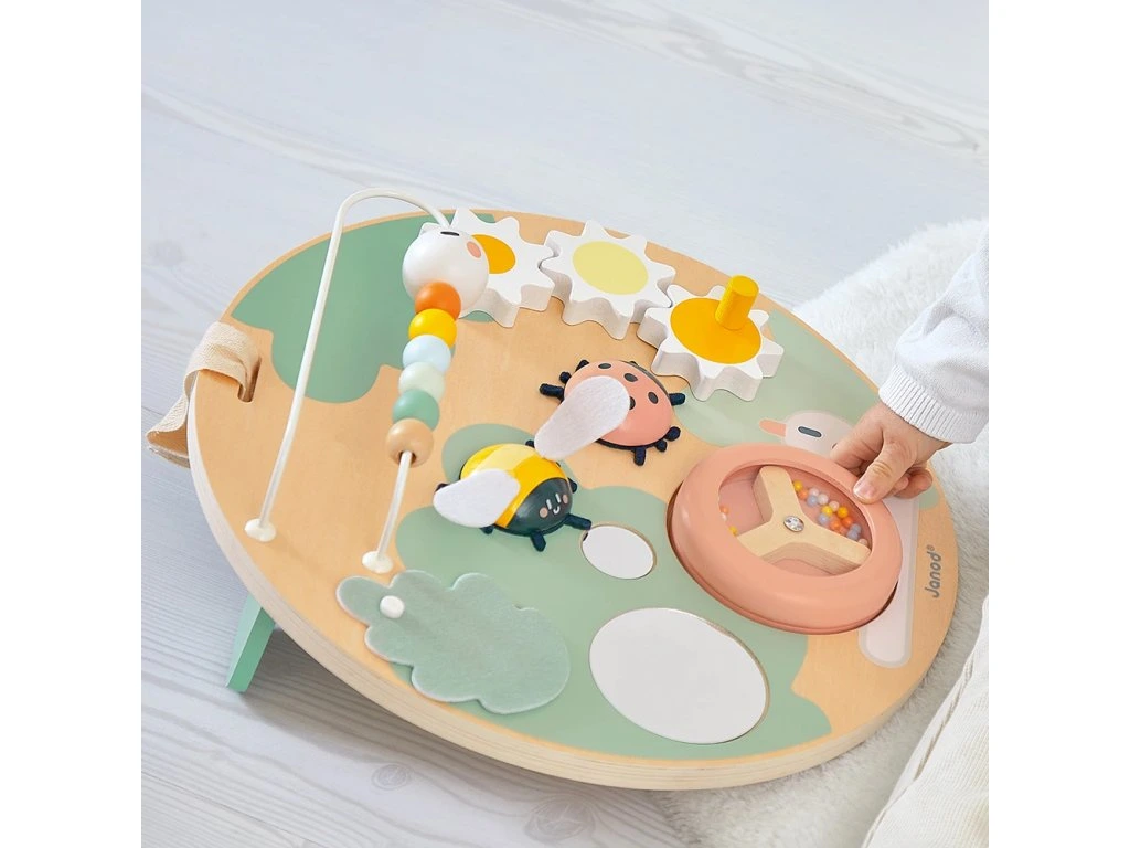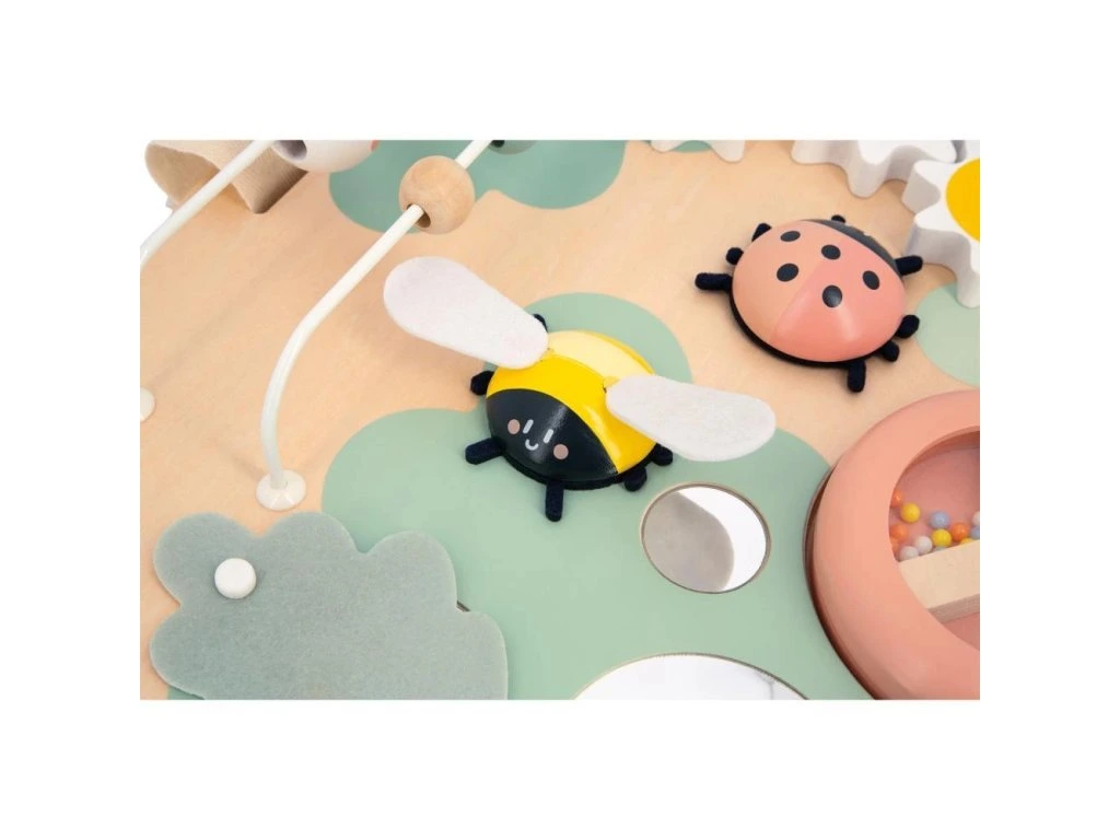 Pojďte se podívat, včelka je připravená odletět, beruška se točí a housenka jde na procházku! Tato krásná dřevěná deska obsahuje množství zahradních zvířátek se zábavnými funkcemi a je ideální na rozvoj jemné motoriky a dovedností dítěte. Deska je flexibilní a umožňuje hru vsedě, u stolu nebo zavěšenou na stěnu.