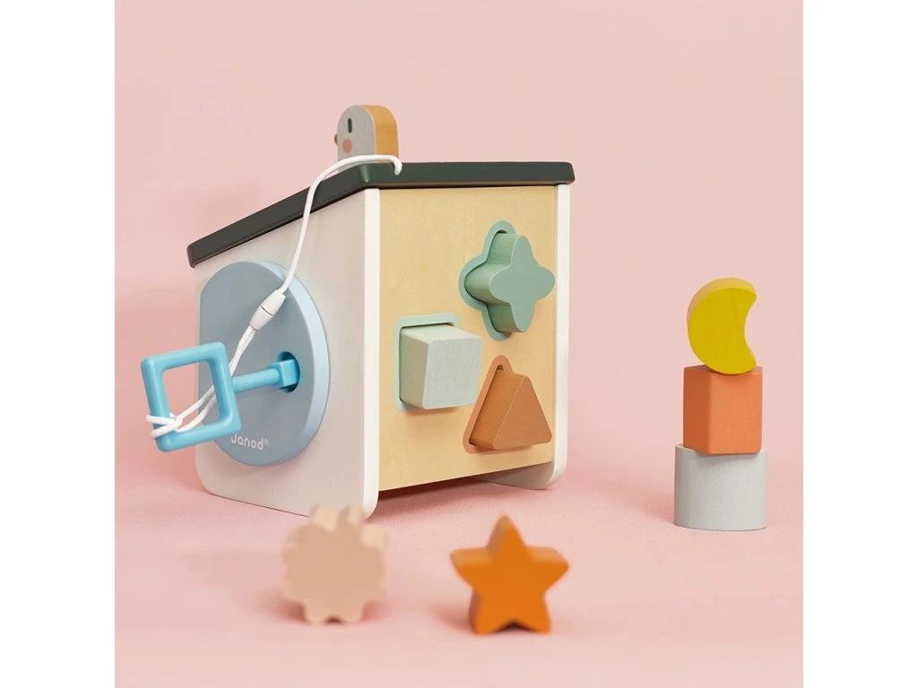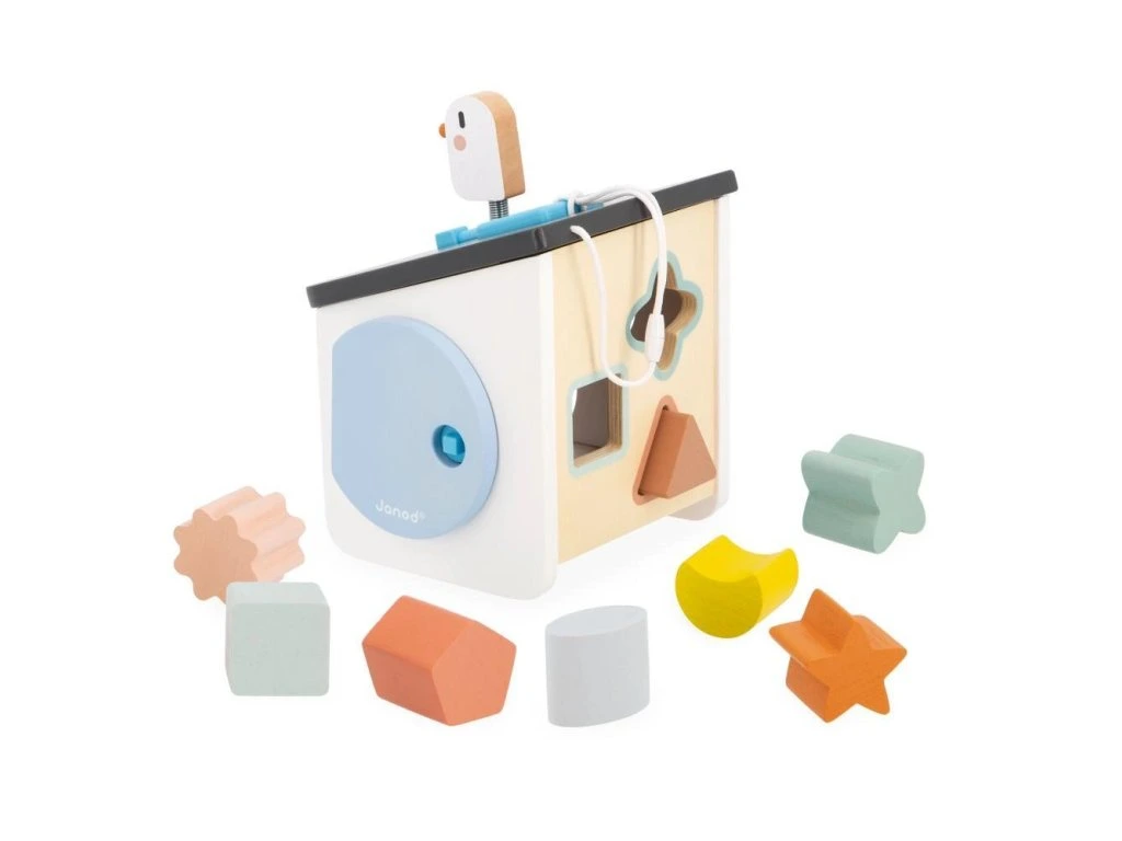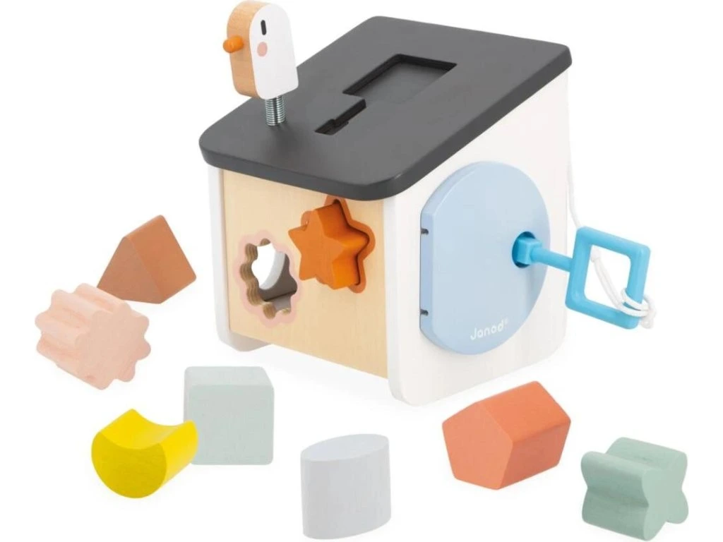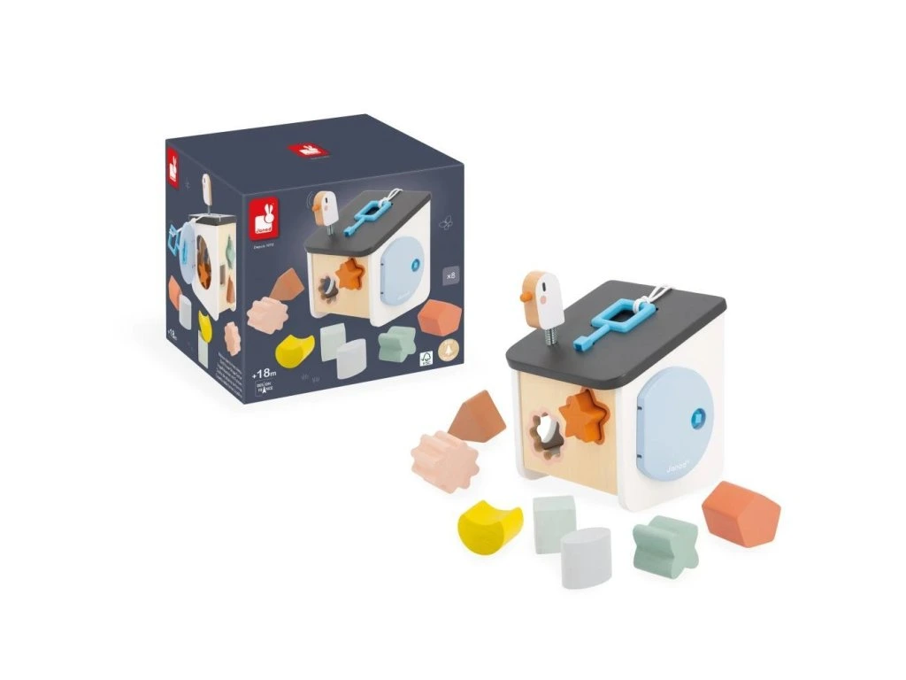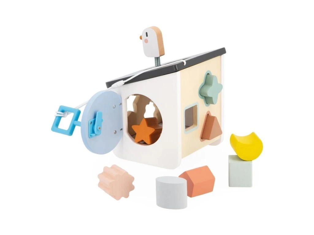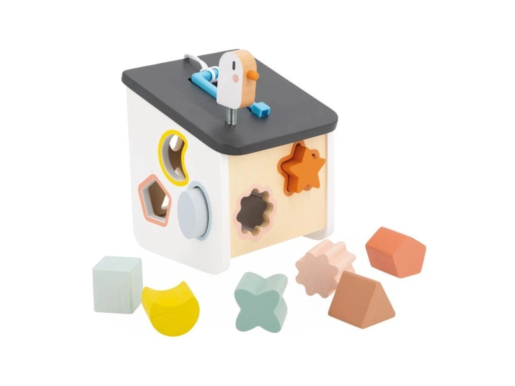 Vítejte doma ptáčci! Náš dřevěný třídič tvarů ve stylu ptačí budky byl navržen pro děti od 18 měsíců. Zapichováním různých tvarů si vaše dítě rozvíjí zručnosti a učí se rozpoznávat tvary a barvy. Barevné obrysy tvarů se shodují s konkrétní barvou otvorů, což usnadňuje hru a učení vlastním tempem. Hračka zároveň nabízí zábavu s ptáčkem na střeše a různé způsoby získávání kousků, které spadnou do krabice.