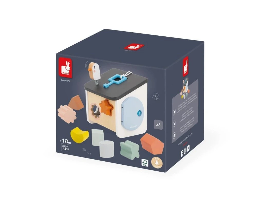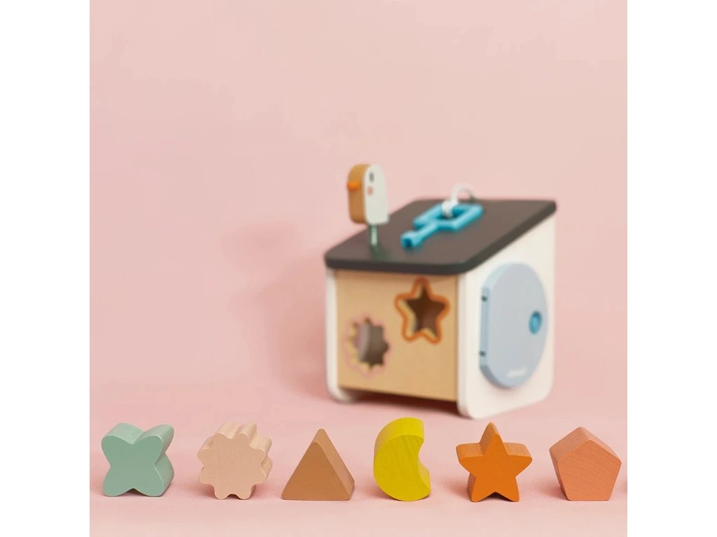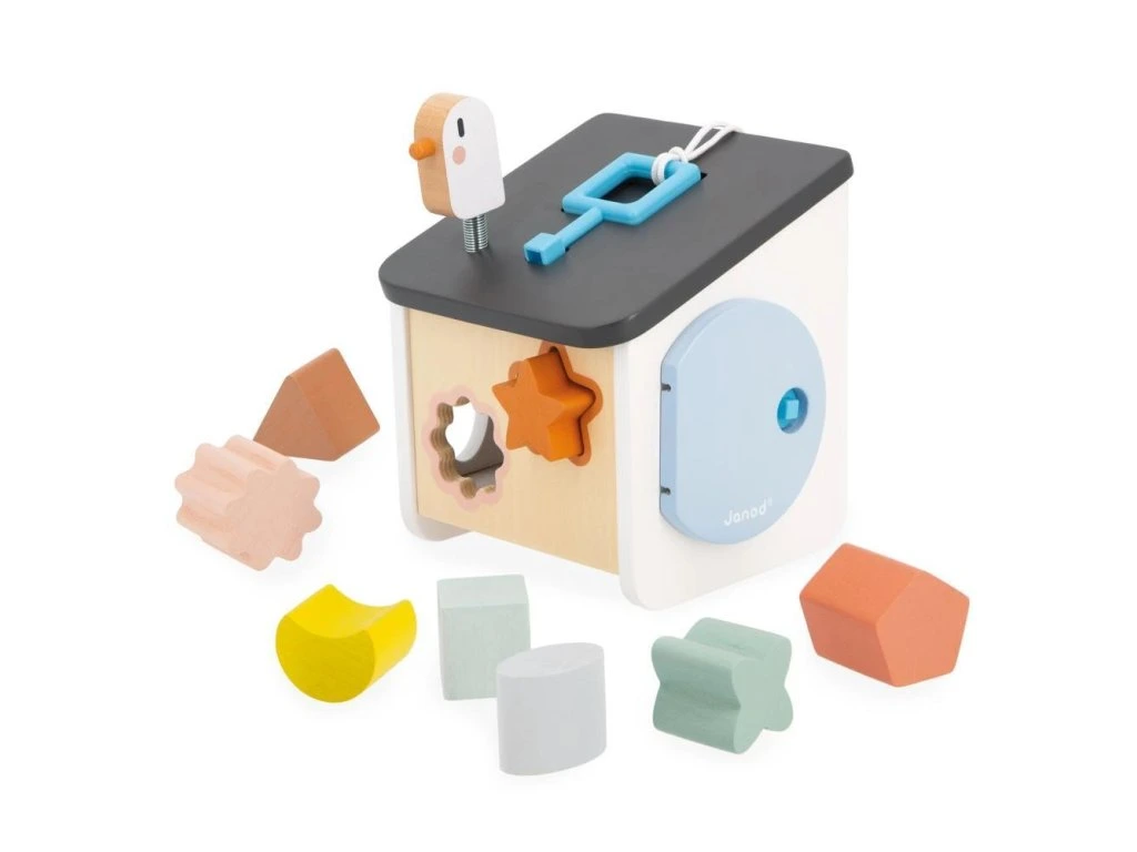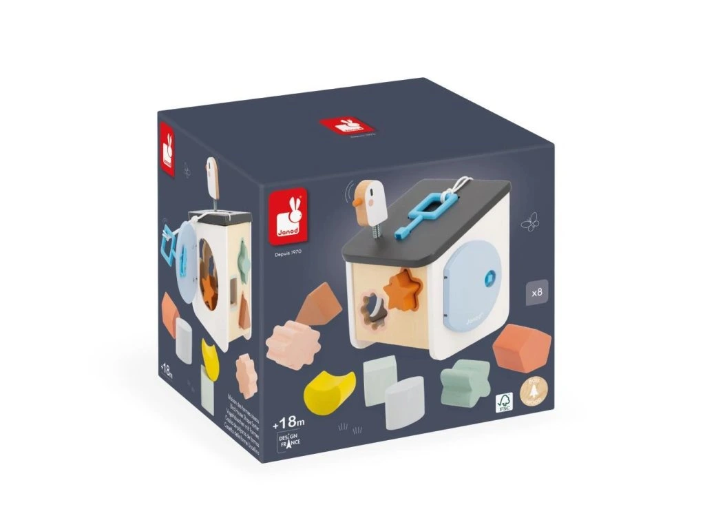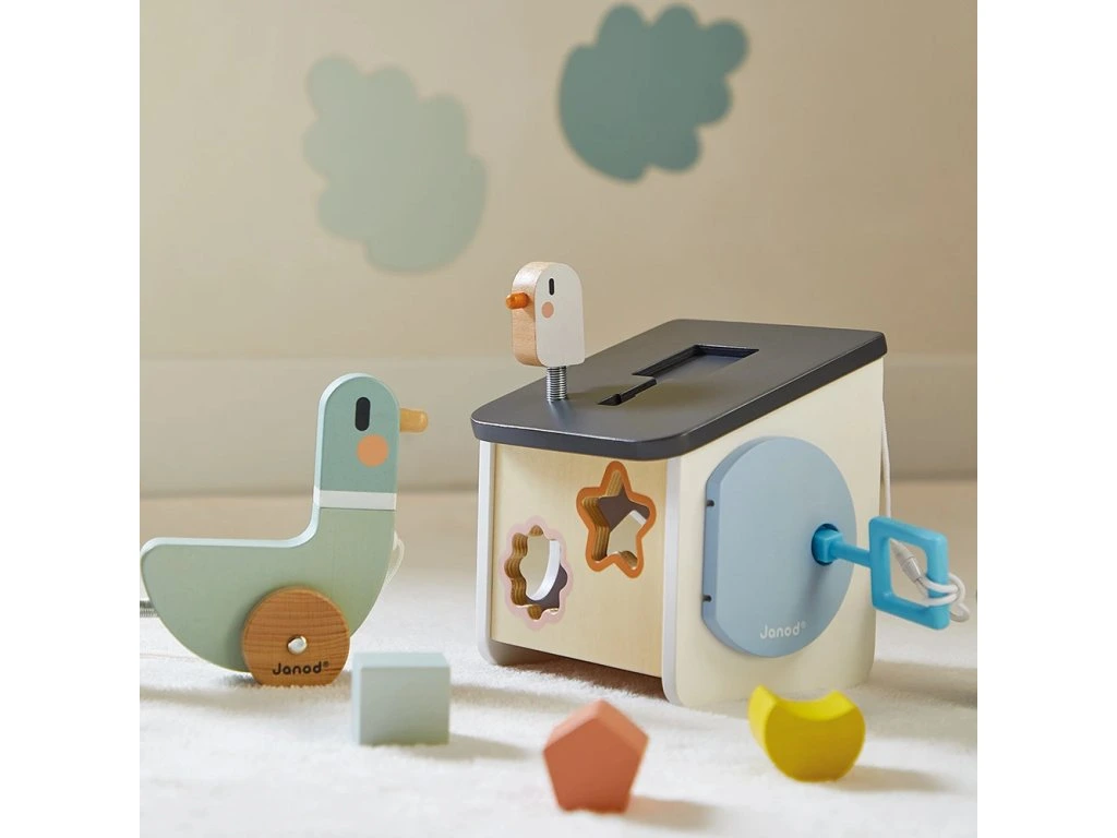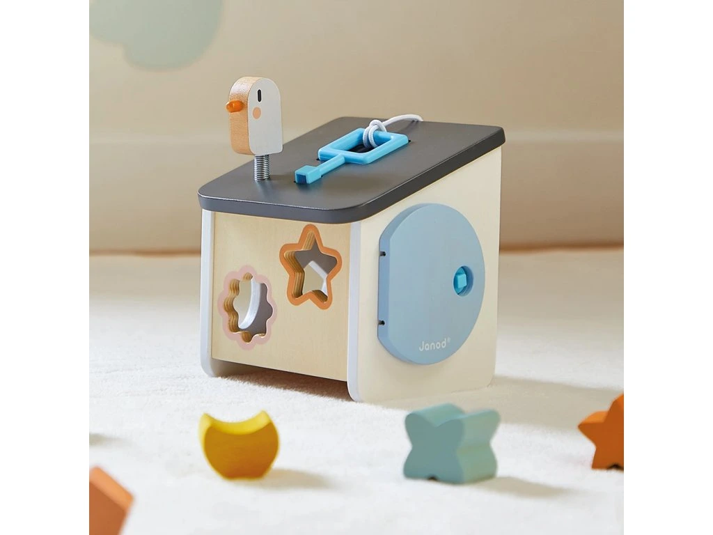 Vítejte doma ptáčci! Náš dřevěný třídič tvarů ve stylu ptačí budky byl navržen pro děti od 18 měsíců. Zapichováním různých tvarů si vaše dítě rozvíjí zručnosti a učí se rozpoznávat tvary a barvy. Barevné obrysy tvarů se shodují s konkrétní barvou otvorů, což usnadňuje hru a učení vlastním tempem. Hračka zároveň nabízí zábavu s ptáčkem na střeše a různé způsoby získávání kousků, které spadnou do krabice.