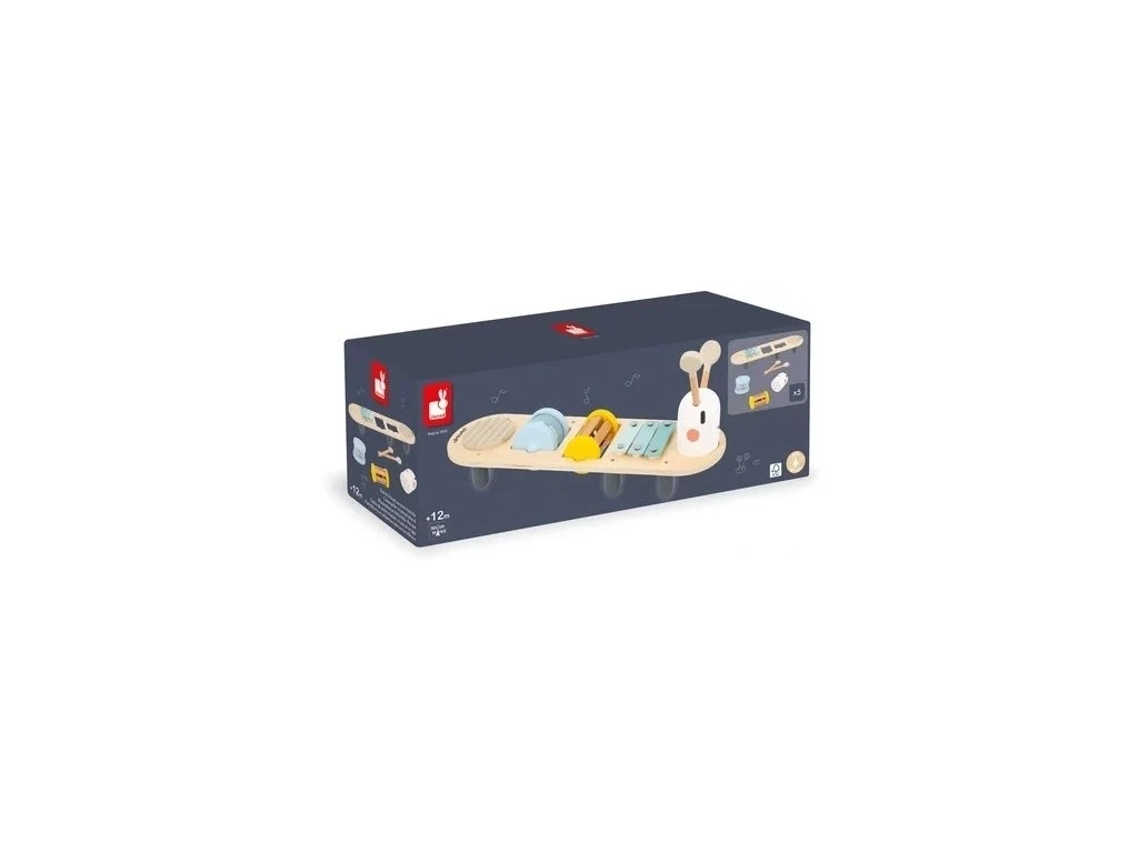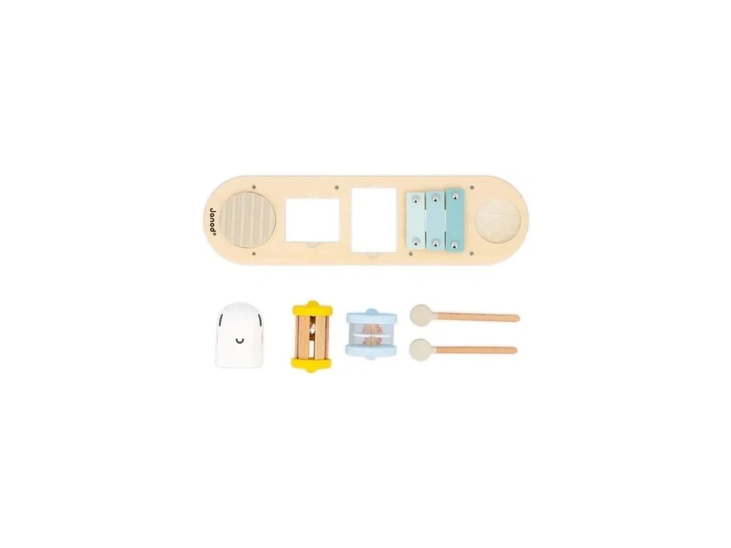 Dřevěný hudební stolek Confetti Janod Nádherný barevný hudební set pro malé hudebníky.