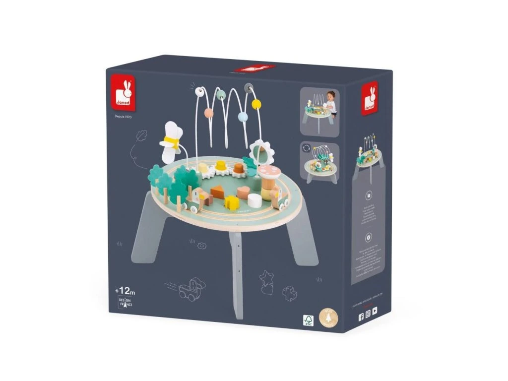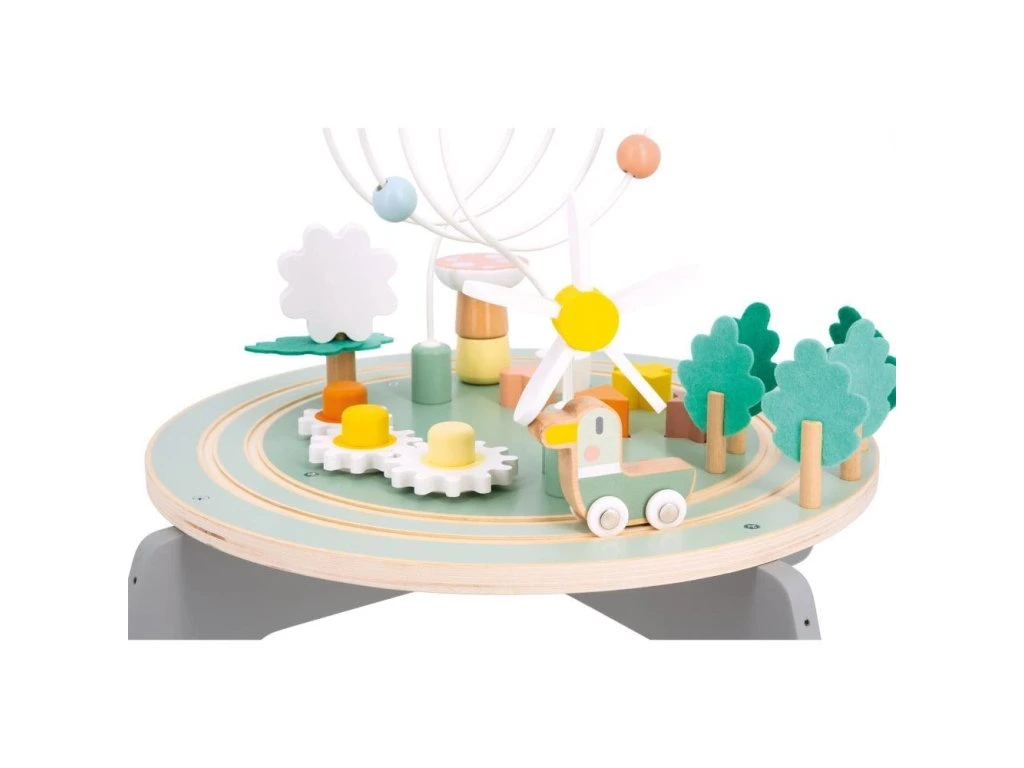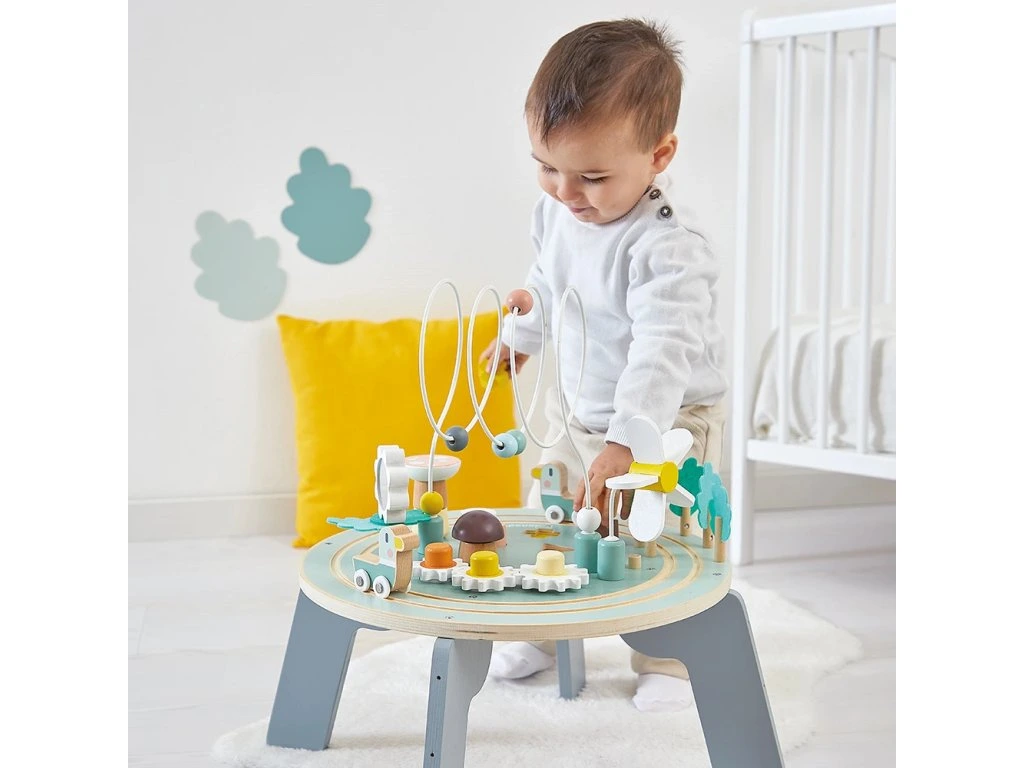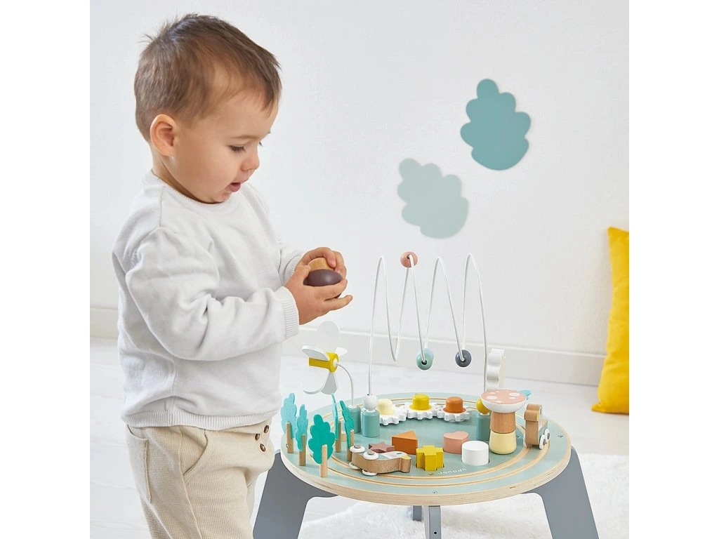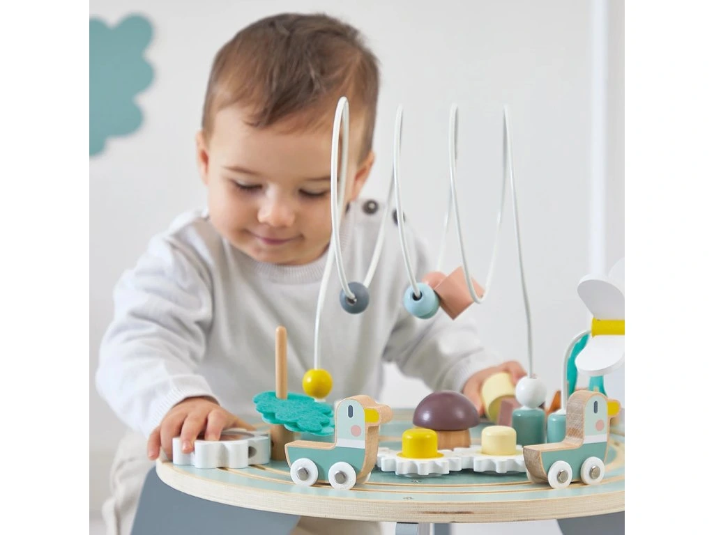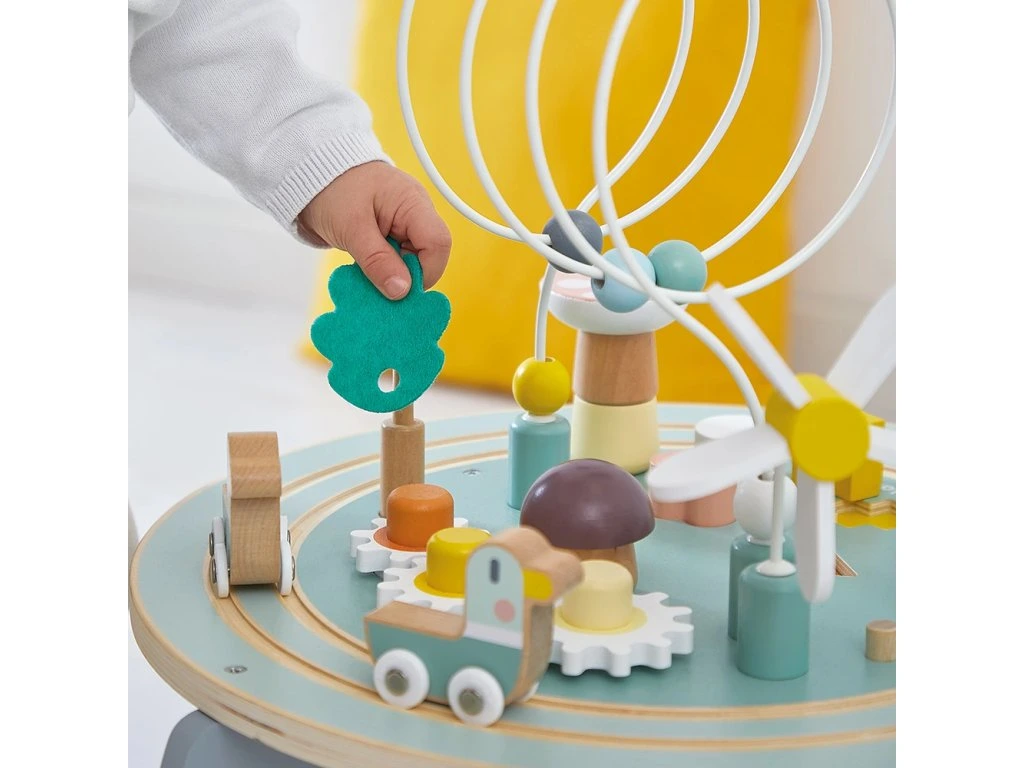 Celkem je k dispozici více než 8 aktivit, které zaručí hodiny zábavy a her. Stolek je vyroben ze dřeva FSCTM a je vhodný pro děti od 12 měsíců.