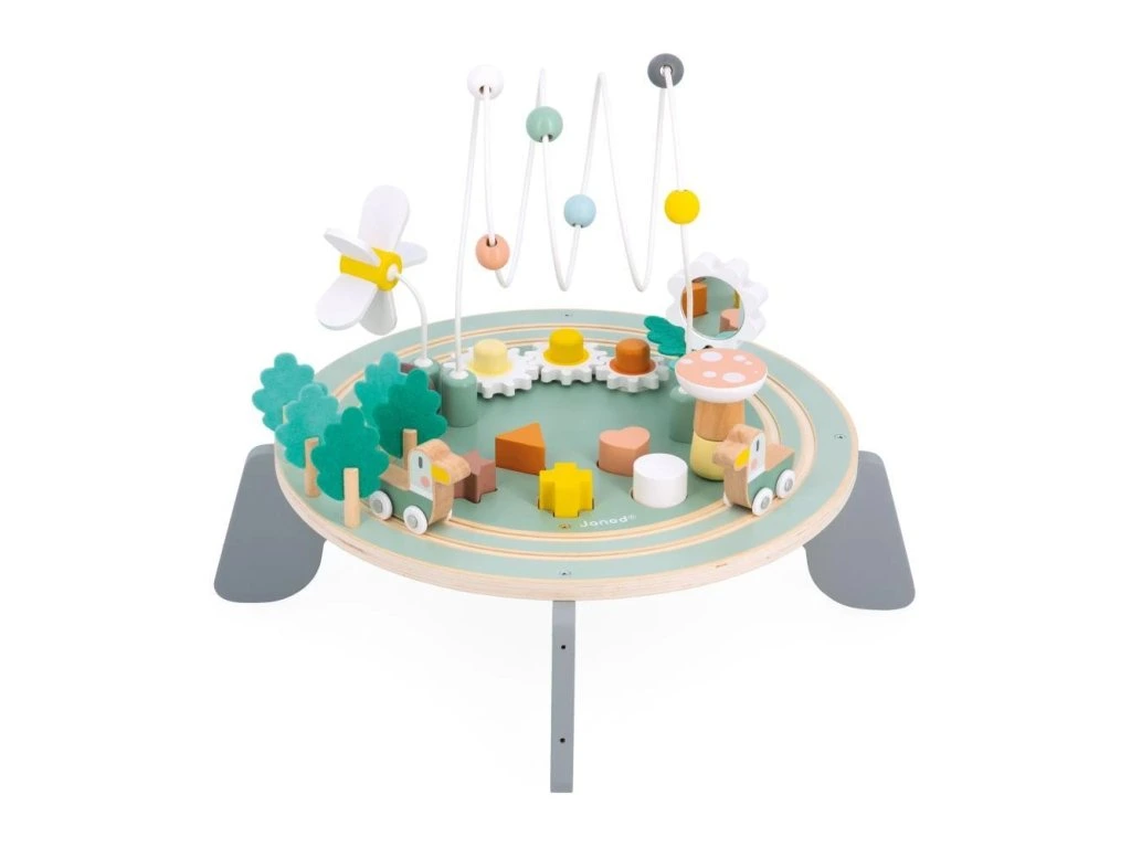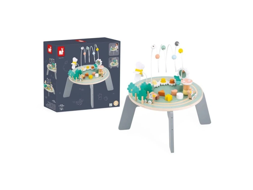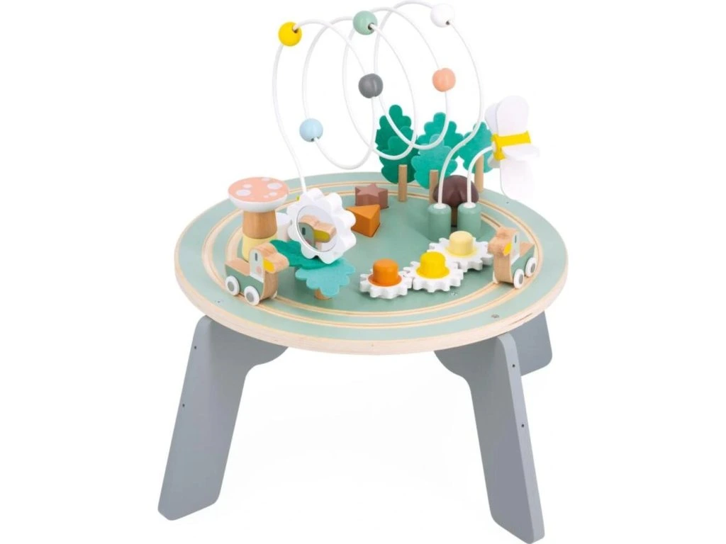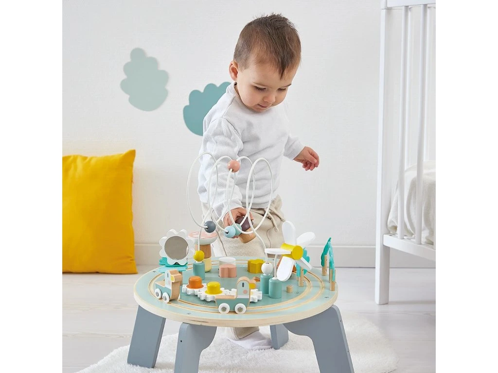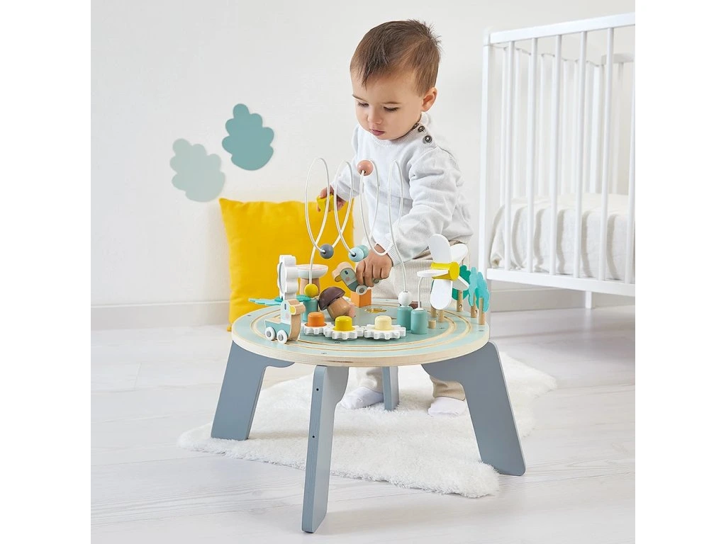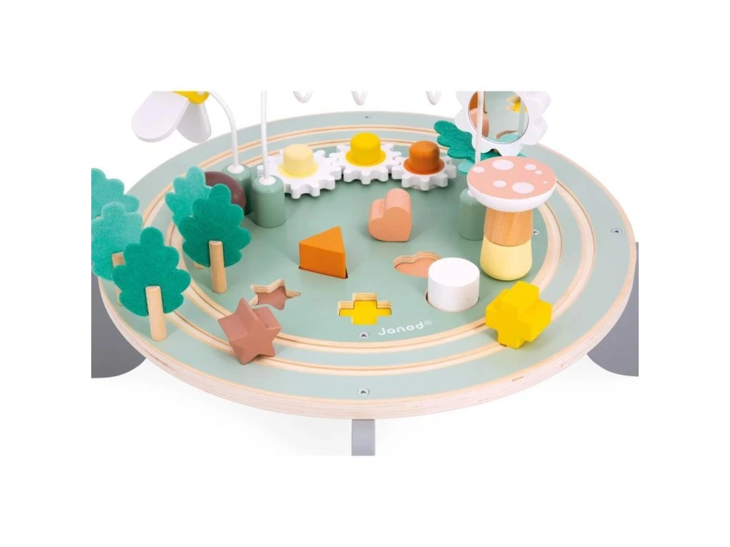 Celkem je k dispozici více než 8 aktivit, které zaručí hodiny zábavy a her. Stolek je vyroben ze dřeva FSCTM a je vhodný pro děti od 12 měsíců.