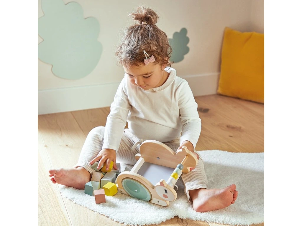 Tato hračka rozvíjí motorické dovednosti, představivost a logiku. Pogumovaná kolečka zajišťují tichý pohyb, ideální je pro první krůčky vašeho dítěte. Vyrobena ze dřeva s certifikátem FSC™ a součást kolekce Sweet Cocoon.