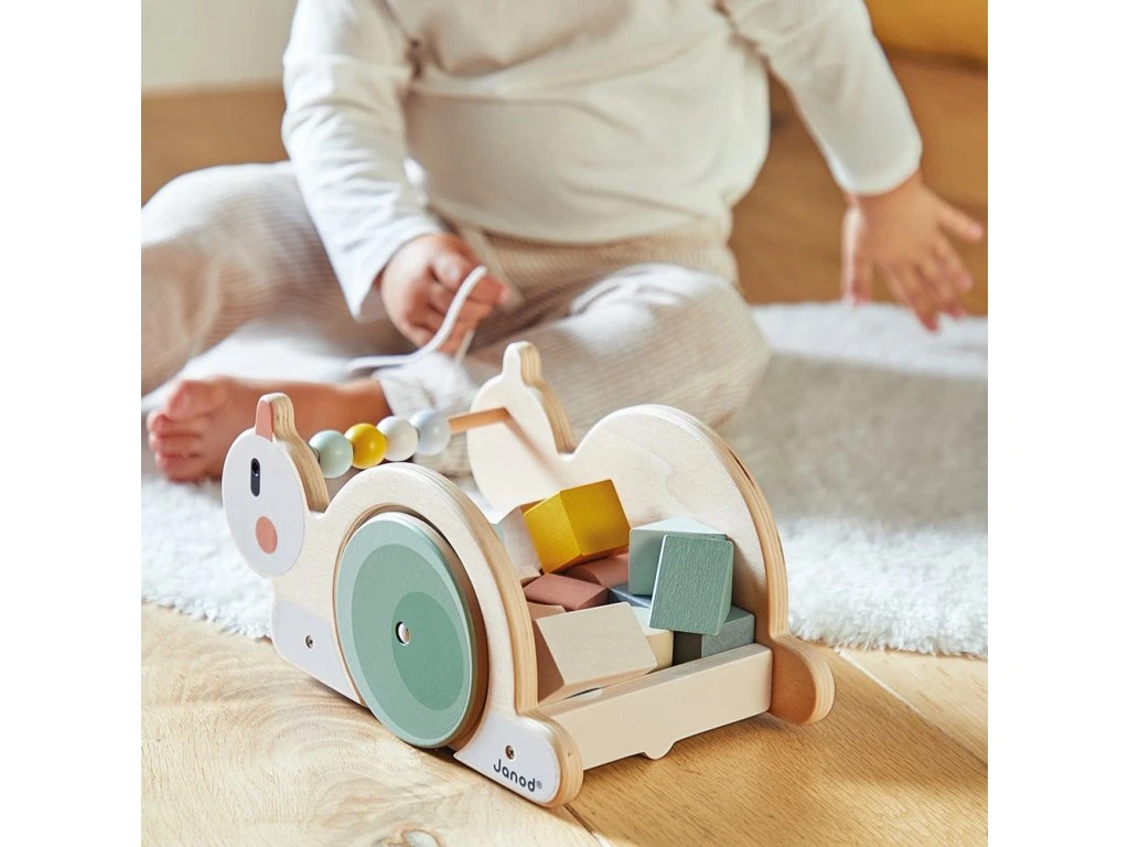 Sweet Cocoon Dřevěný tahací vozík s kostkami Šnek