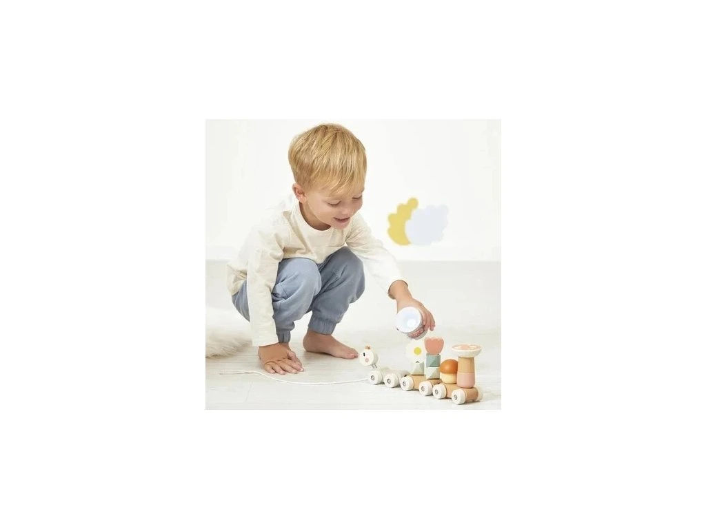 Objevte očarující hračku, která podněcuje představivost těch nejmenších a stimuluje jejich motorický vývoj. Tato dřevěná hračka na tahání nebo tlačení vnáší do her vašeho dítěte kouzlo a podporuje koordinaci a jemnou motoriku.