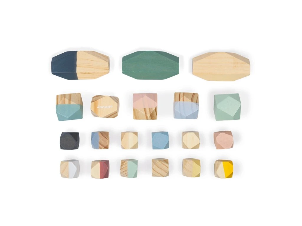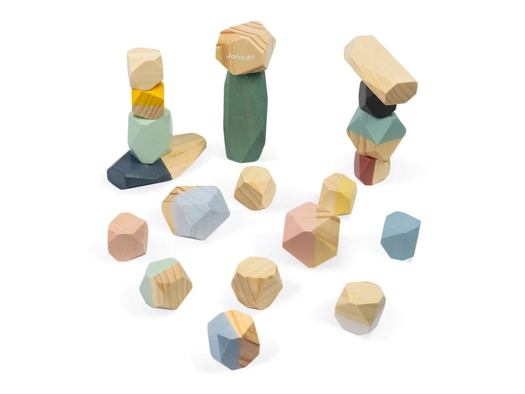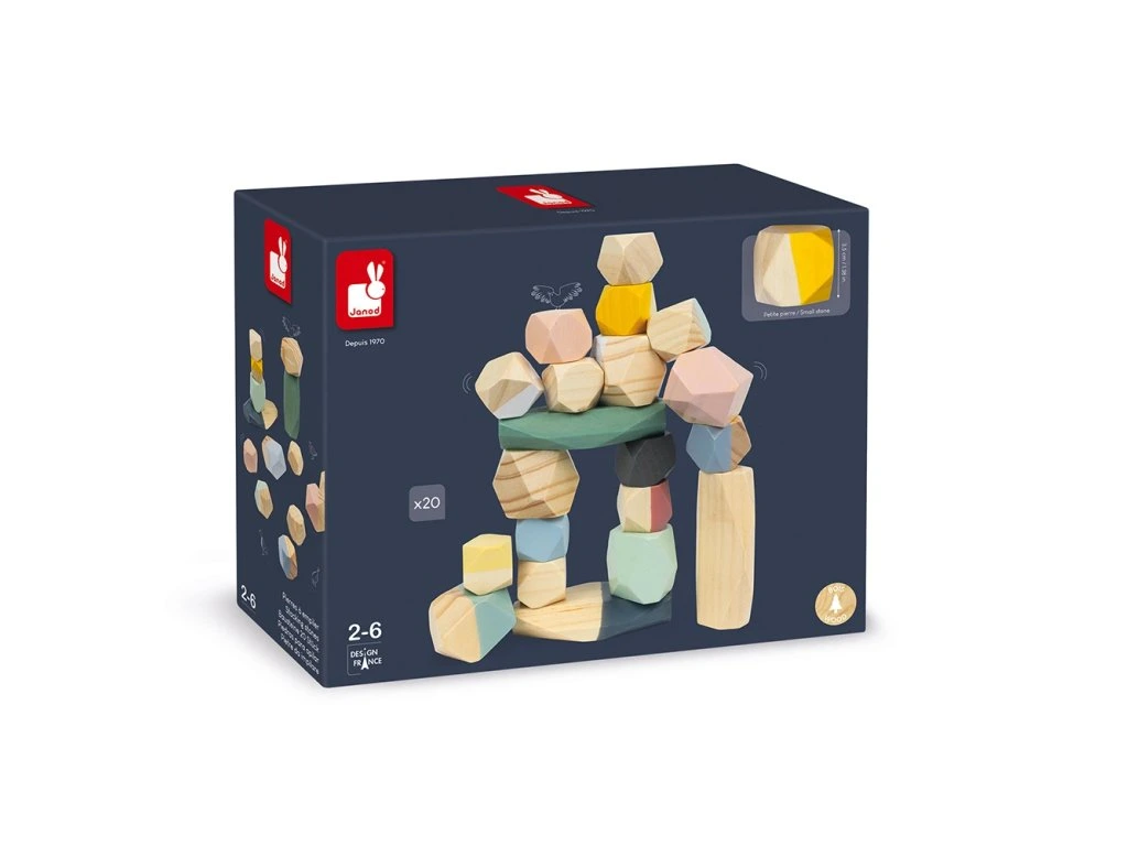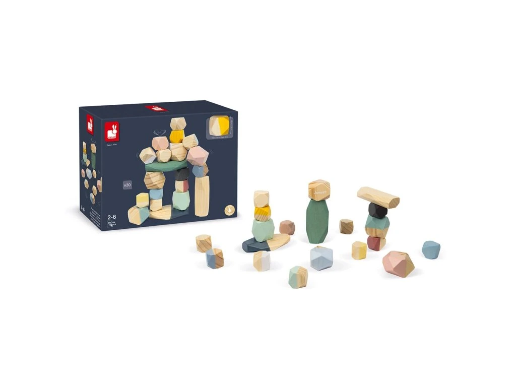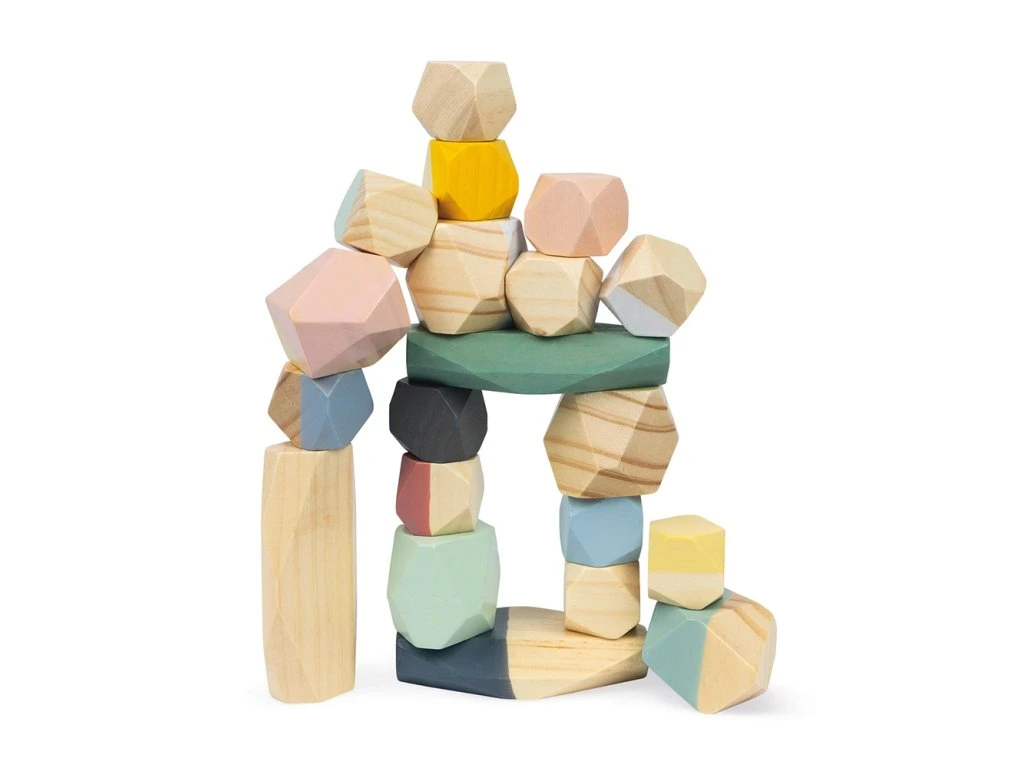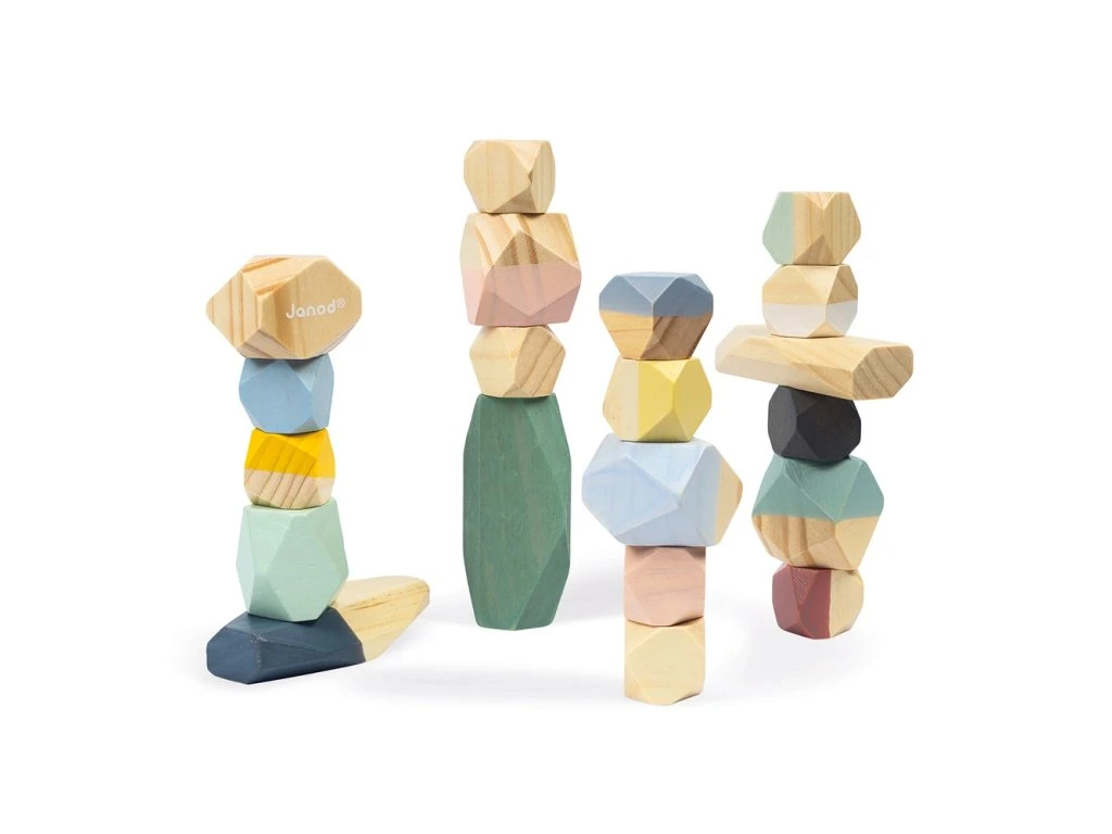 Stohovací dřevěné kameny Janod série Sweet Cocoon.