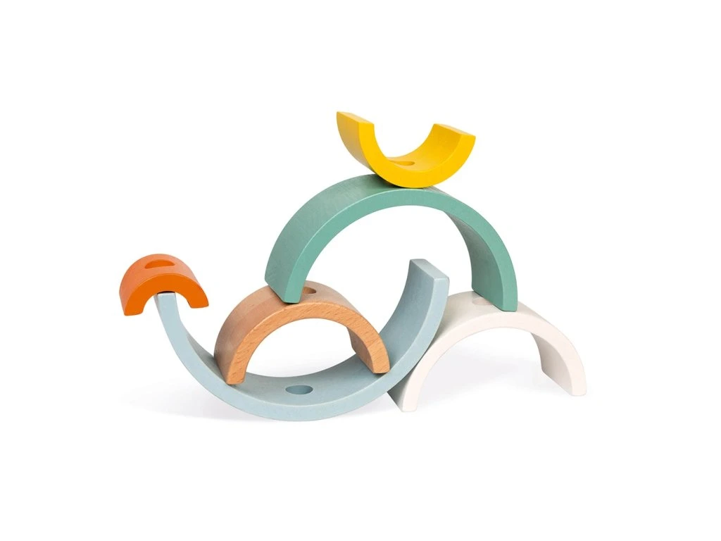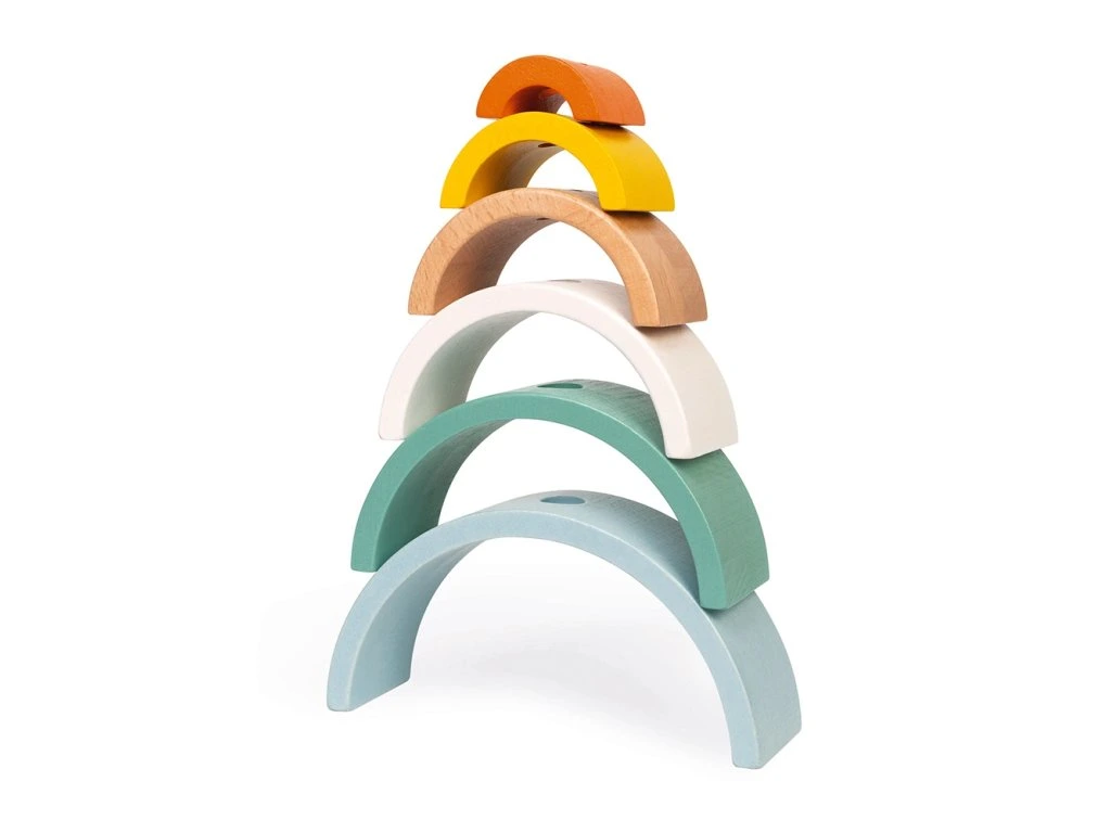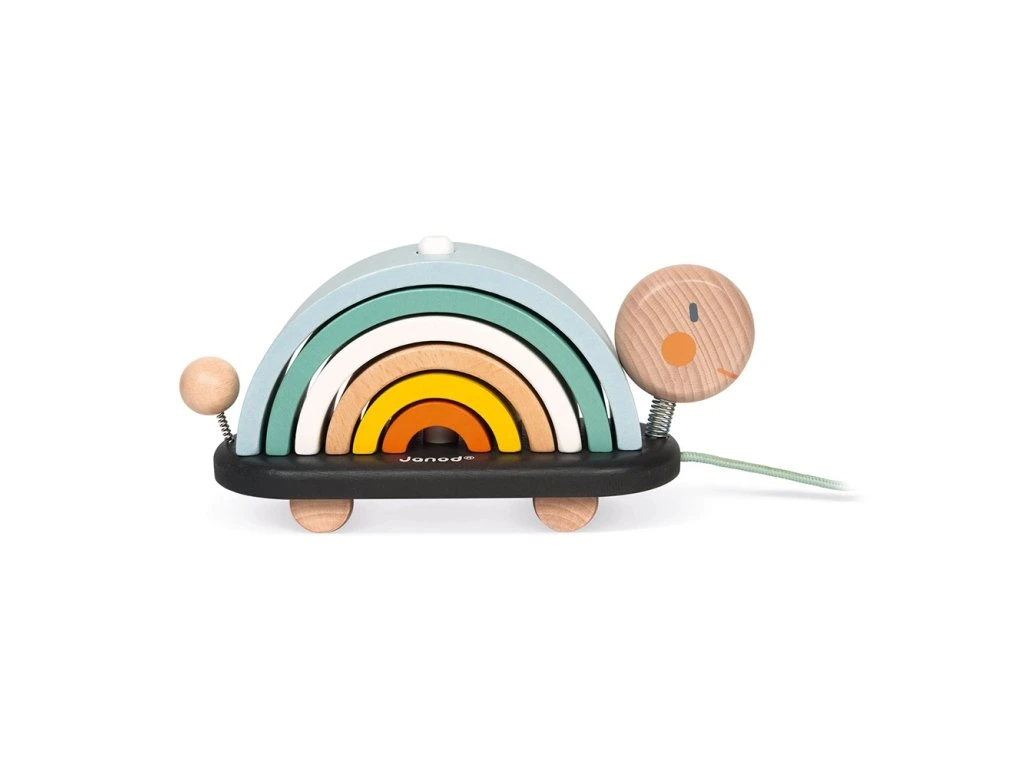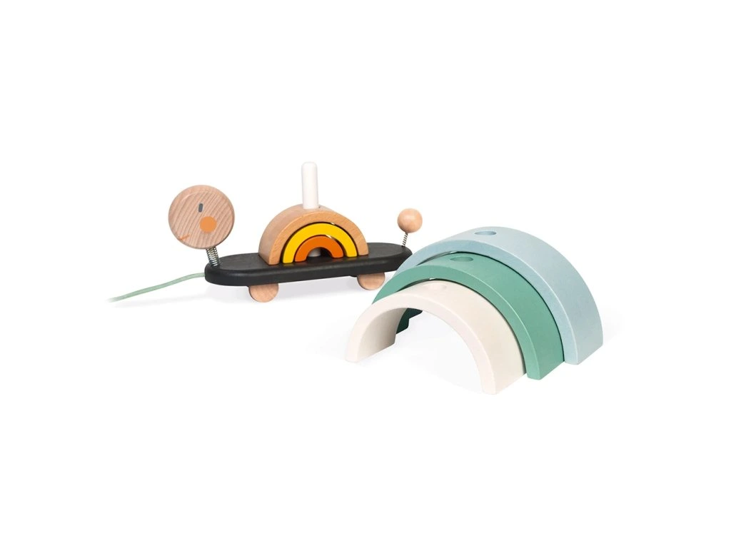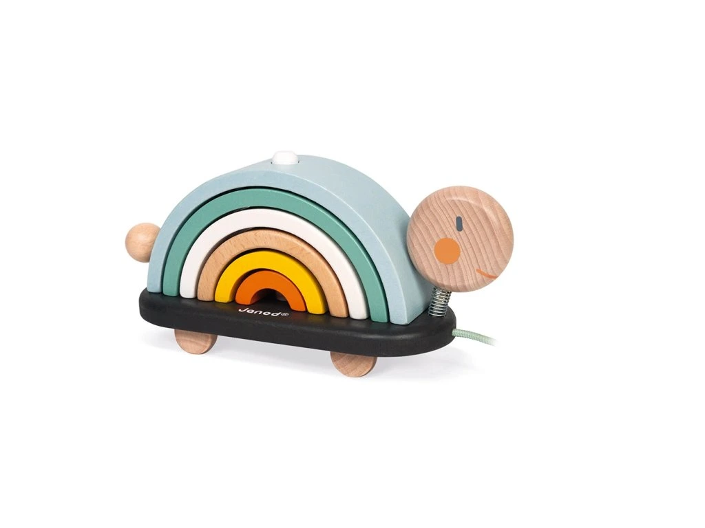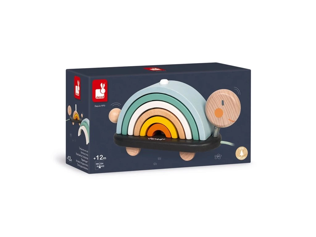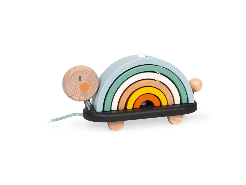 Dřevěná hračka na tahání a navlékání Duha série Sweet Cocoon.Krásná dřevěná želvička na tahání, vhodná i na procházky v jemných, pastelových barvách. Želvička je navržena k rozvoji motorických schopností Vašeho dítěte. Dřevěné díly barevné duhy motivují děti k učení a poznávání barev, rozvíjejí koordinaci oko-ruka, obratnost a motoriku. Tahací želvička obsahuje 6 dřevěných barevných dílů duhy.Vhodné pro děti: od 1 roku