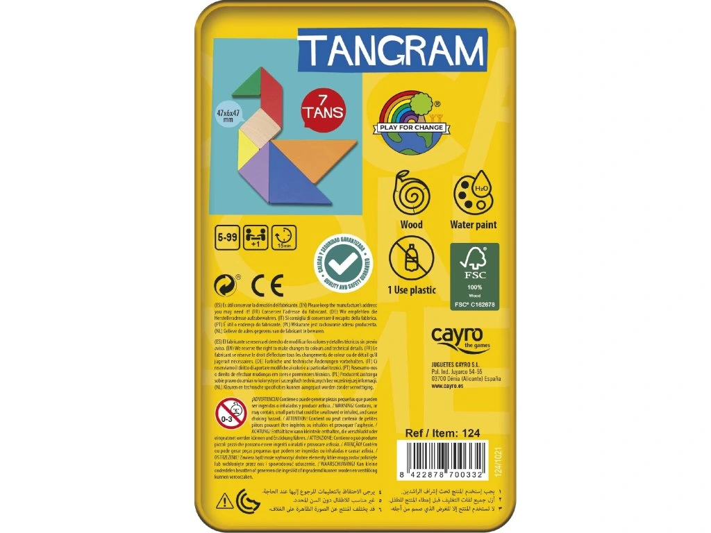 Hra je vhodná pro děti od 5 let. TANGRAM je tradiční čínská hra na trpělivost, jedna z nejstarších her na světě. Skládá se ze sedmi dílků zvaných TAN, které vznikají rozdělením čtverce na 5 různých trojúhelníků, 1 čtverec a 1 rovnoběžník.