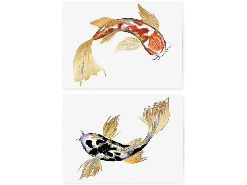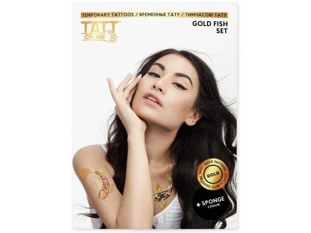 Naše dočasné tetování Zlatá rybka je inspirované tetováními Koi Fish z asijských tradic a legend. Může být vaším prvním krokem k vyzkoušení tetování nebo doplňkem k vašemu image na několik dní.