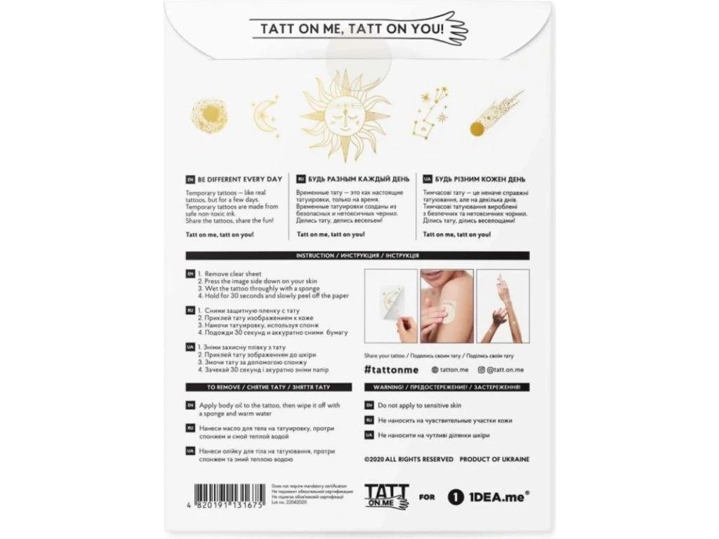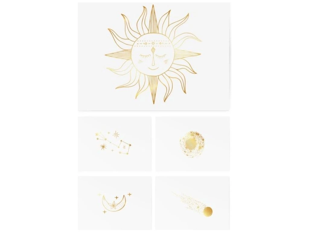 Svěť, svěť malá hvězdičko! Ach, jaká jsi krásná a třpytivá. Slunce, Měsíc a Hvězdy budou ležet na vašich ramenou (nebo kdekoliv je aplikujete) celý den a celou noc. Jen nezapomeňte sdílet tetování se svou astrální přítelkyní!