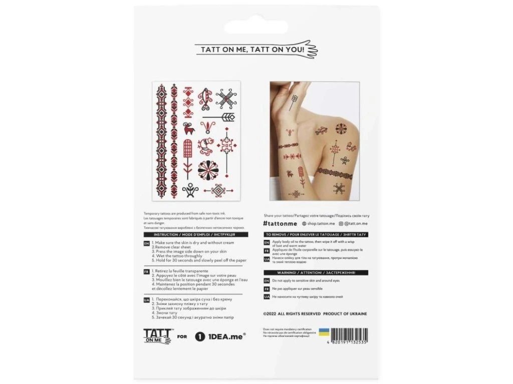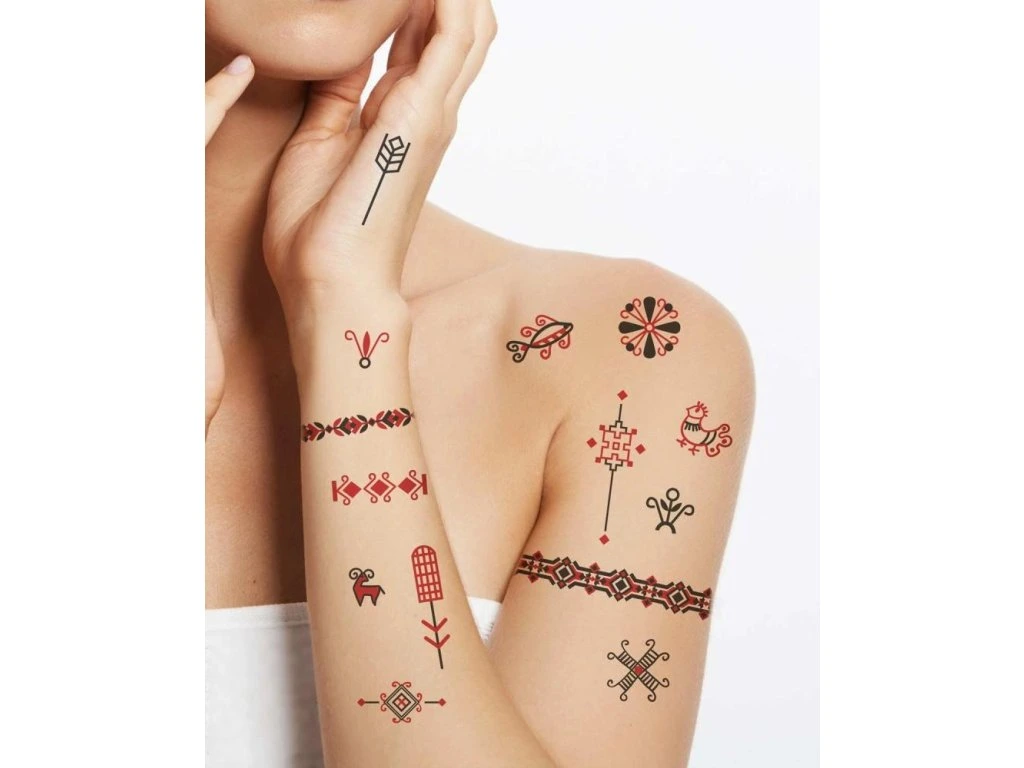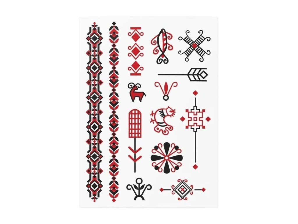 Každý symbol ukrajinského vyšívacího ornamentu má svůj význam. Maminky a babičky je sbíraly a ručně přišívaly na košile a utěrky, aby svým blízkým přinesly štěstí, statečnost, bohatství či zdraví. Teď můžeme hrdě nosit a sdílet tyto prastaré symboly s naším mixem dočasných tetování Ornaments. Vystřihujte a kombinujte tetování jakýmkoli způsobem.