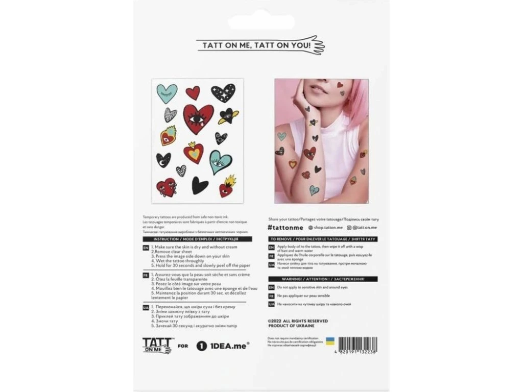 TATTonMe Vodeodolné dočasné tetovačky Srdce mix