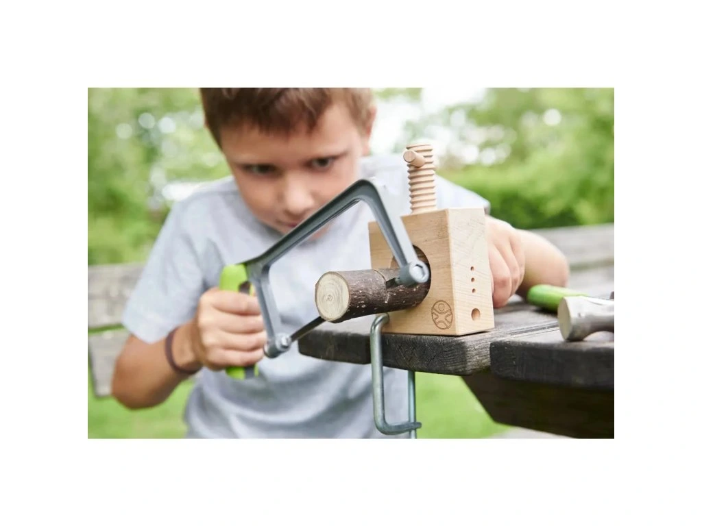 Dětská pila pro malé řemeslníky je ideální součástí základní výbavy každého malého mistra od 6 let. Díky ergonomicky tvarované rukojeti se pohodlně drží v ruce a umožňuje bezpečné a přesné pílení. Pilu lze použít na různé práce se zpracováním dřeva i kovu. Součástí balení jsou dva různé pilové listy, které se dají jednoduše vyměnit pomocí praktického napínacího šroubu. Děti si tak mohou bezpečně vyzkoušet práci skutečných řemeslníků a rozvíjet svou zručnost a trpělivost.